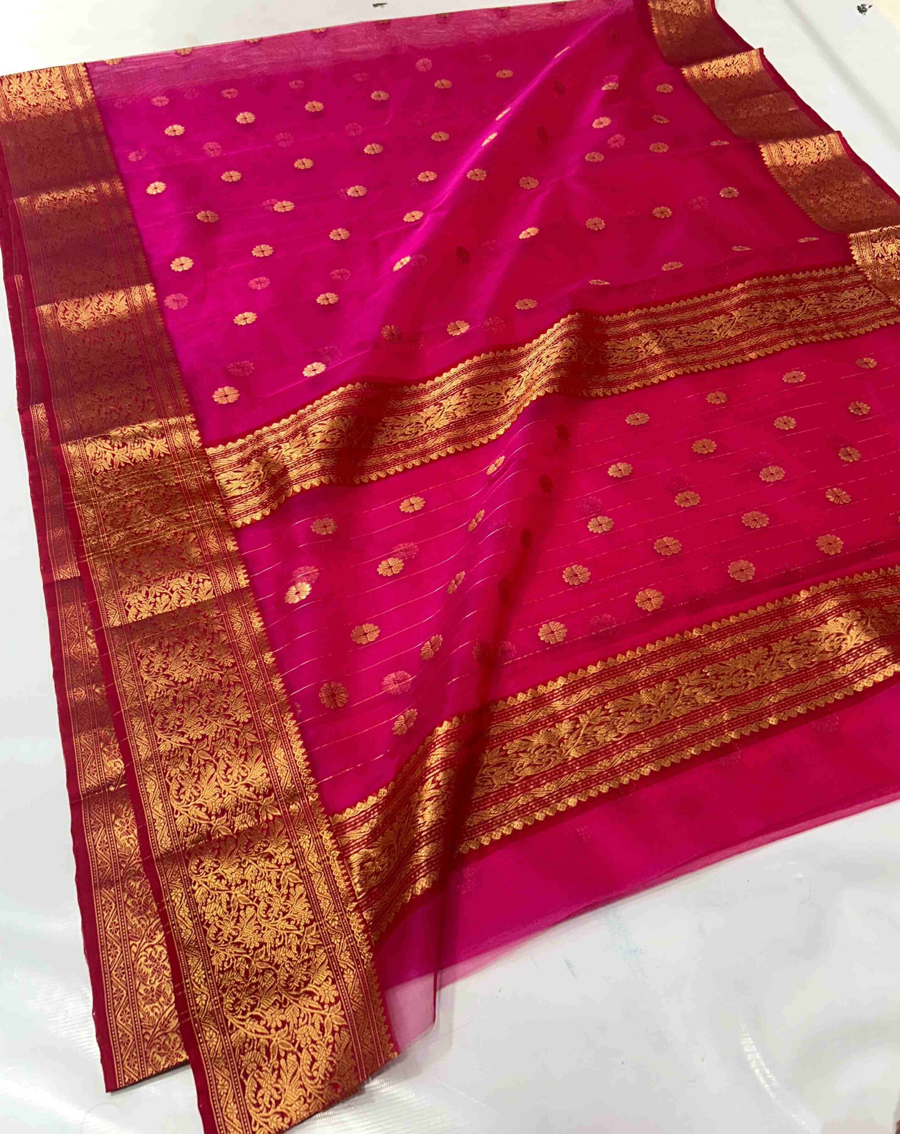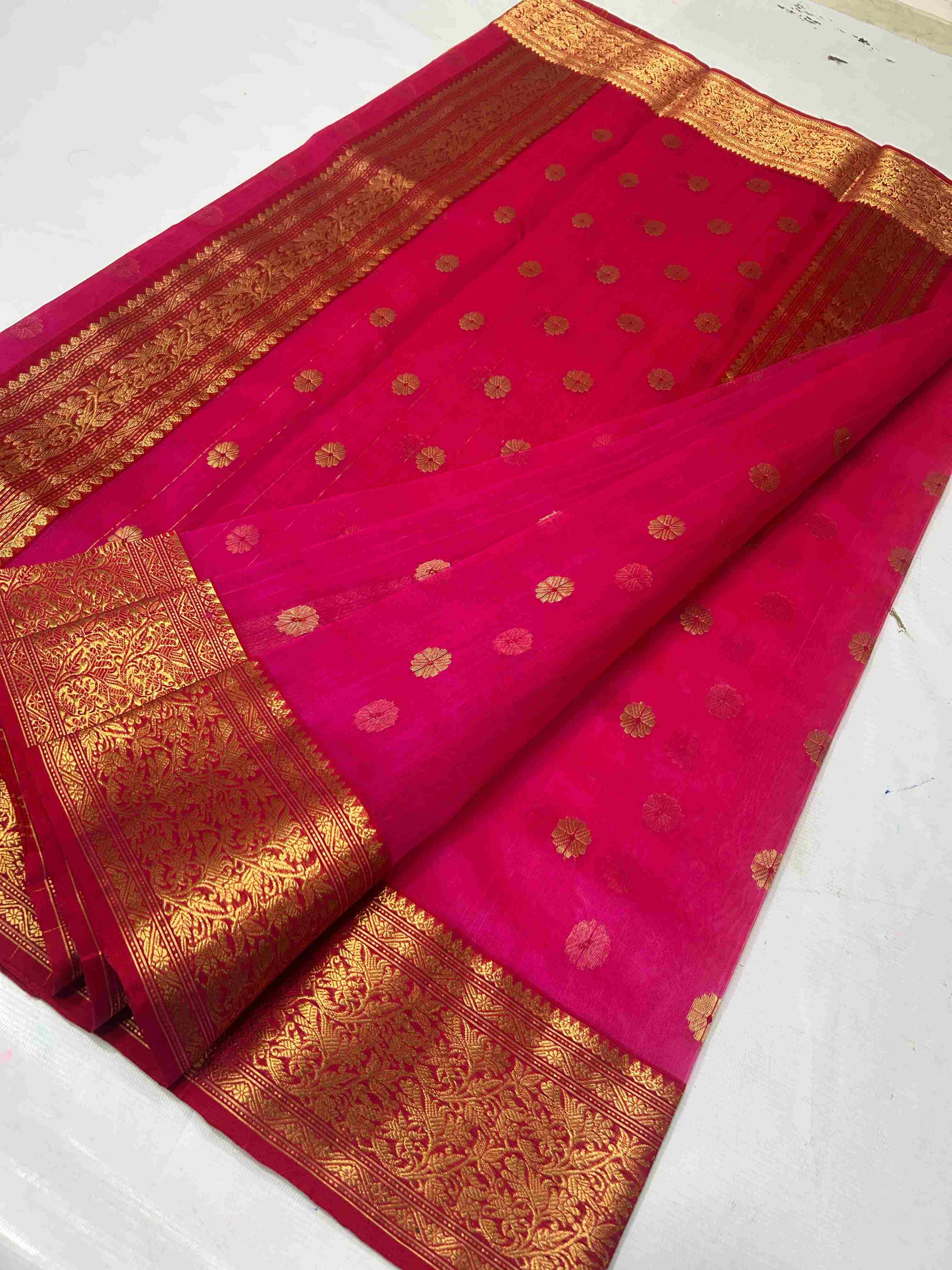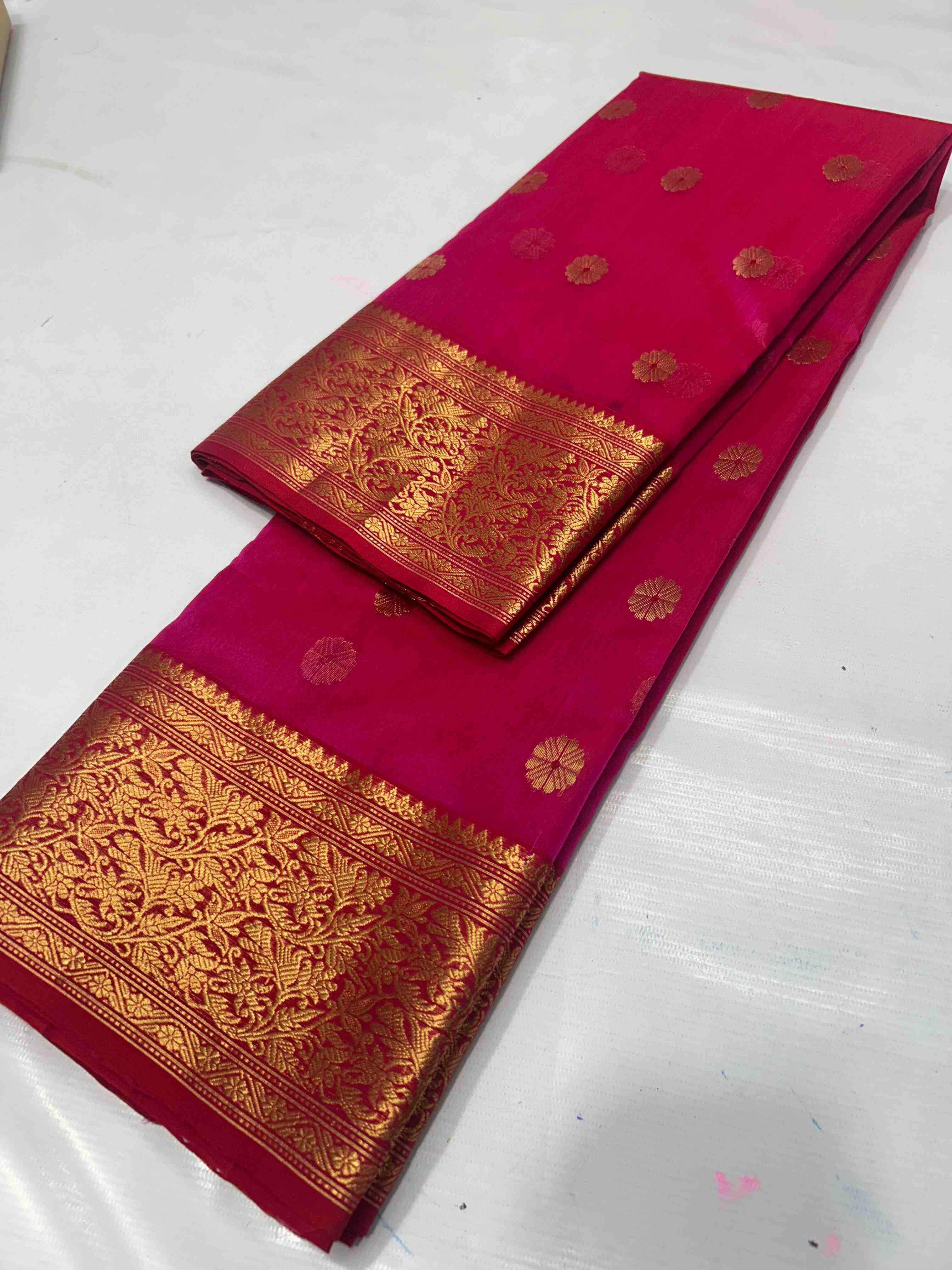 Hot Pink Chanderi Handloom Katan Silk Nakshi Saree
