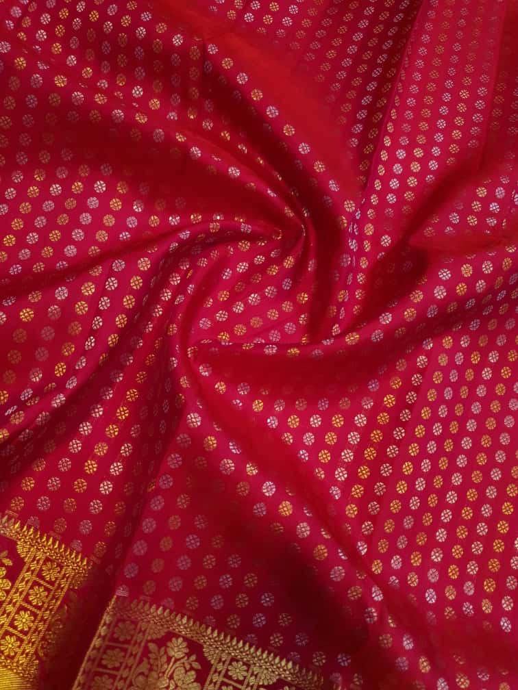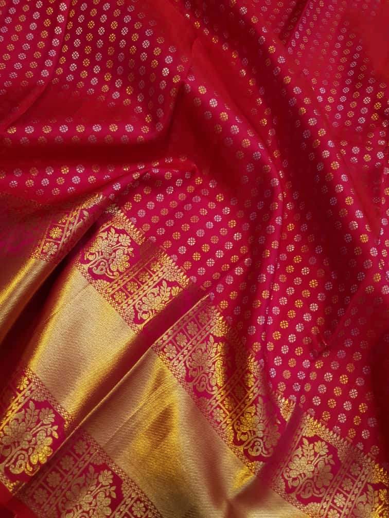 Hot Pink Kanchipuram Handloom Tissue Brocade Silk Saree