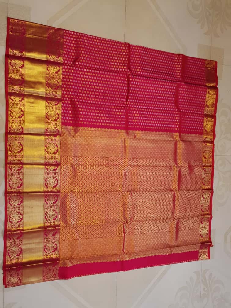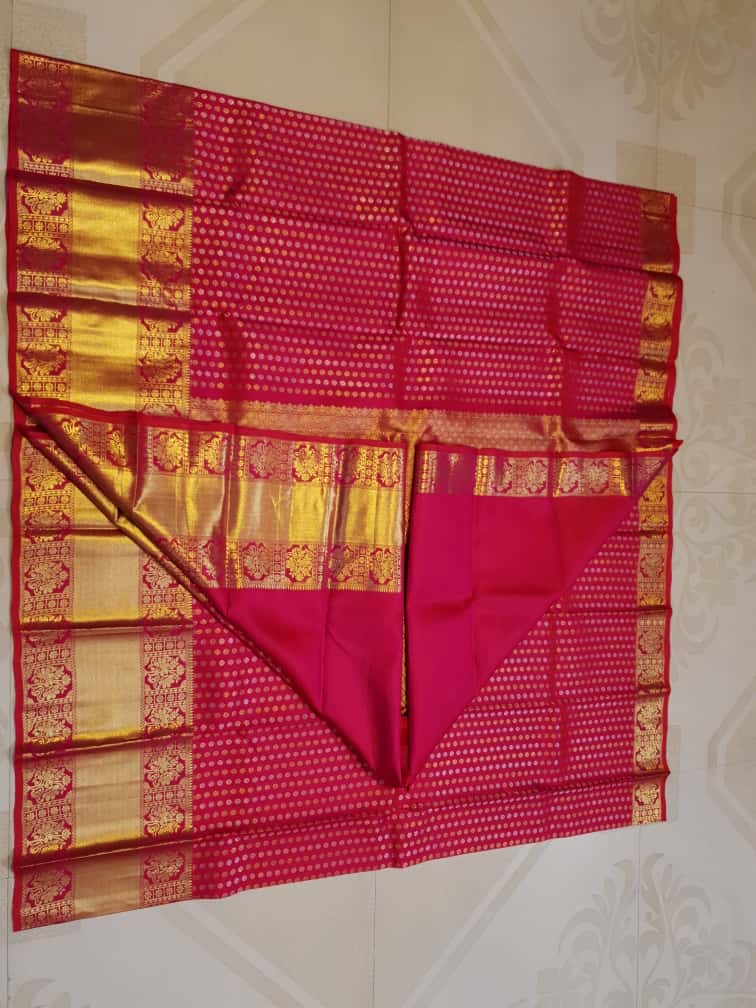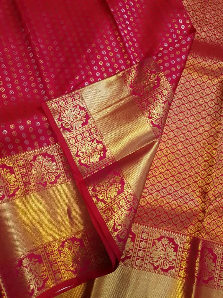 Hot Pink Kanchipuram Handloom 2G Gold Bridal Silk Saree