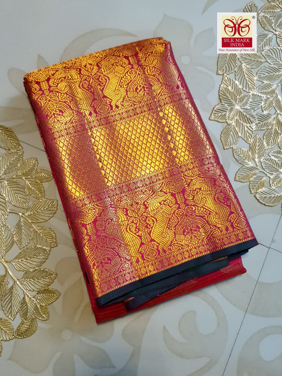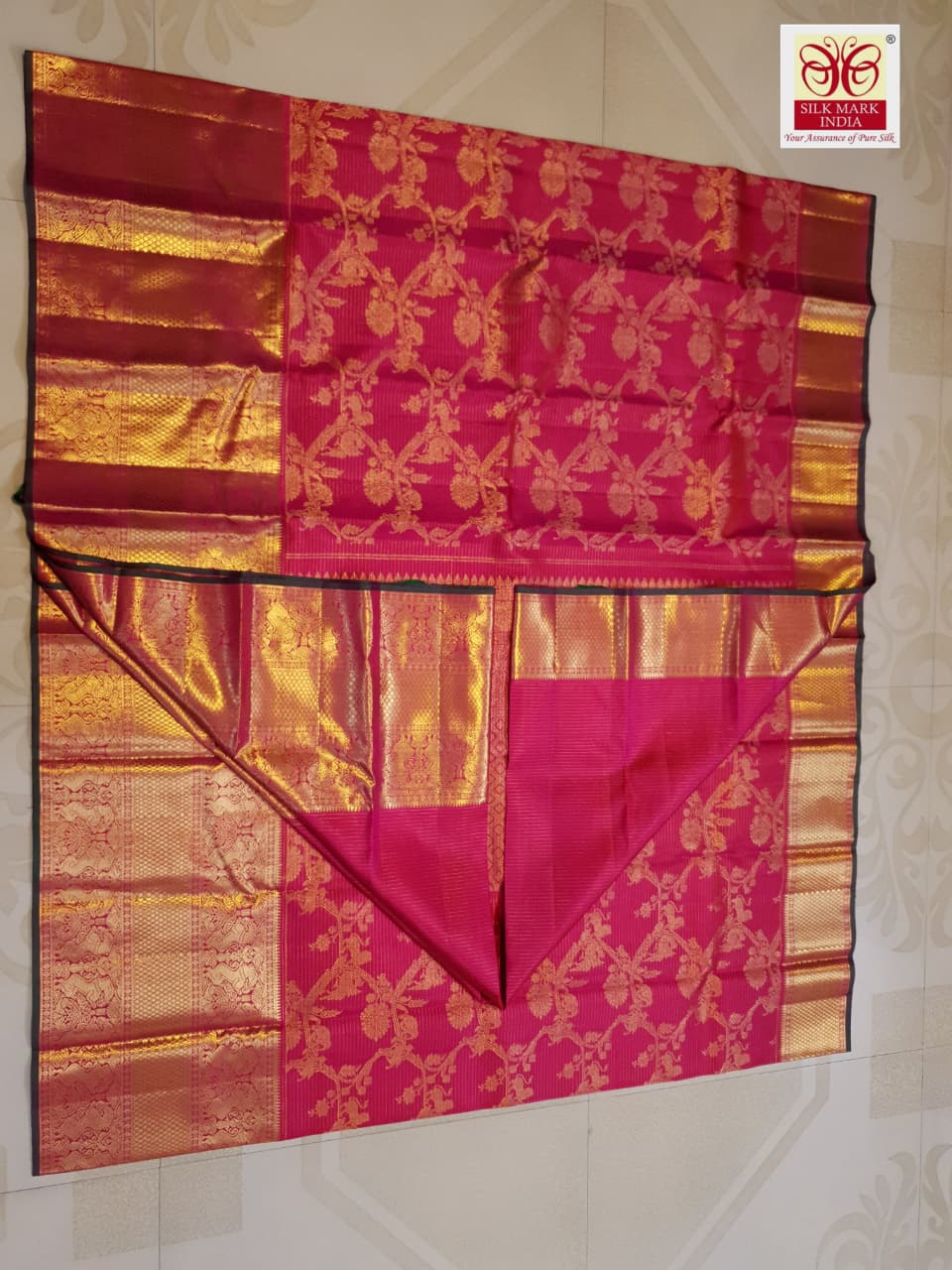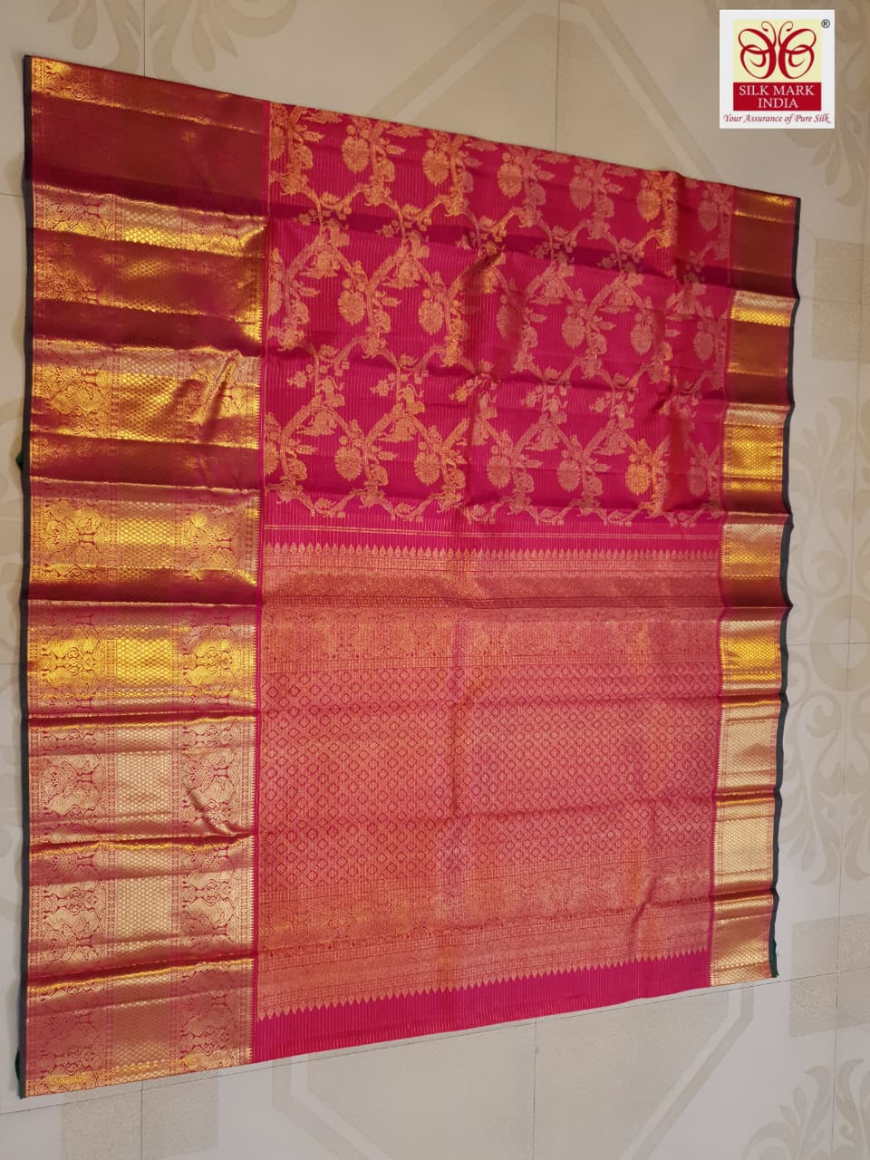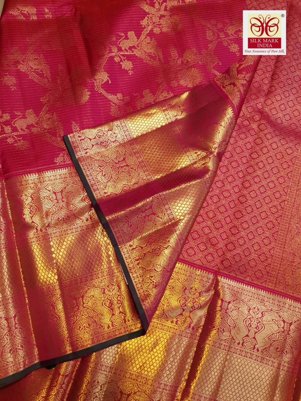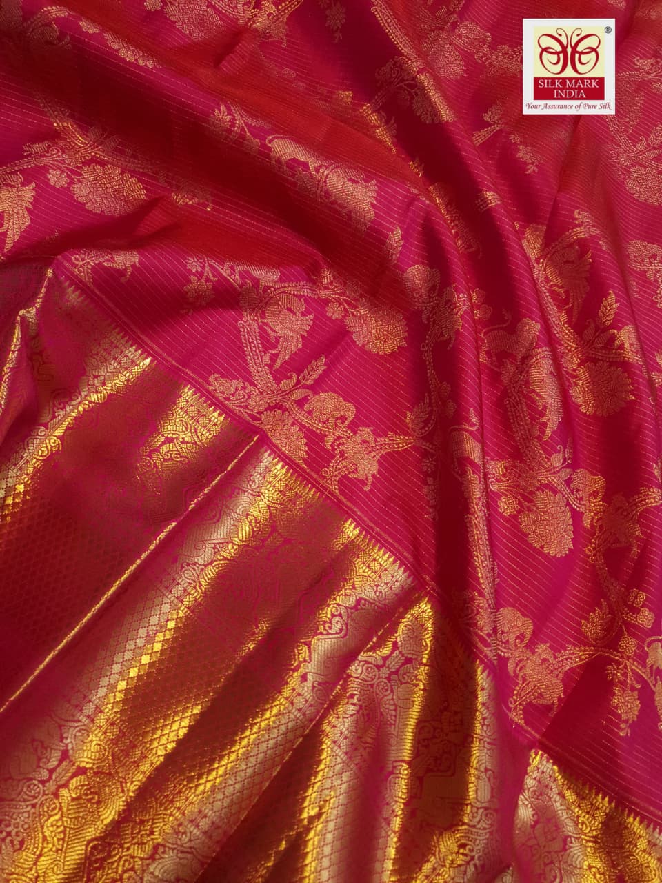 Hot Pink Kanchipuram Handloom 2G Gold Pattu Silk Saree
