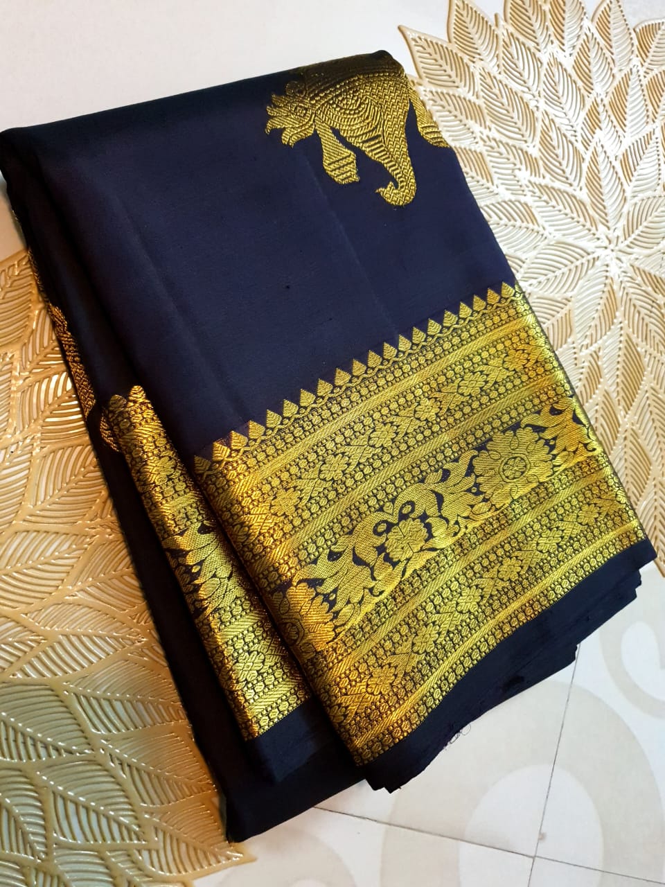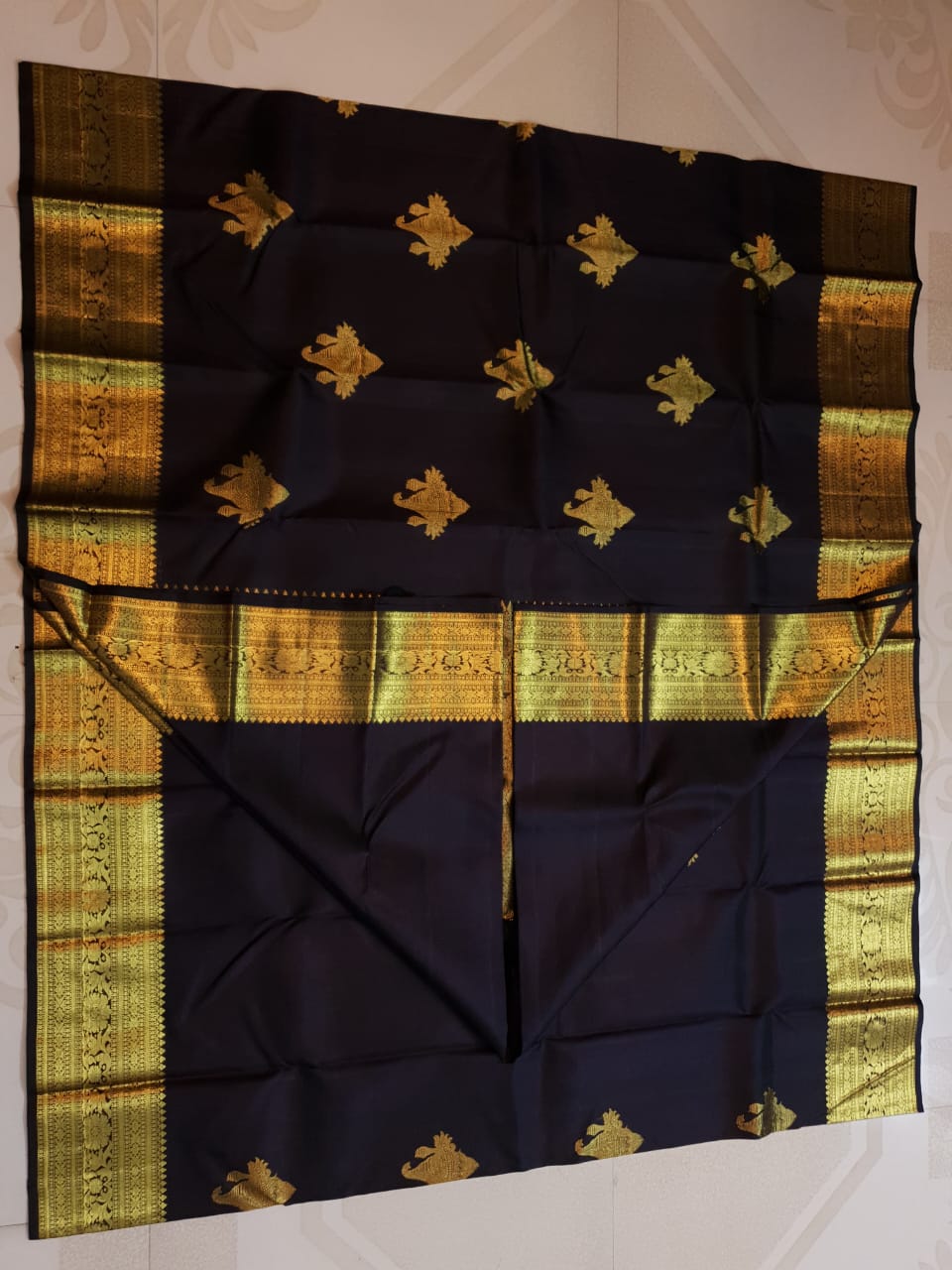 Midnight Blue Kanchipuram Handloom 2G Gold Pattu Silk Saree