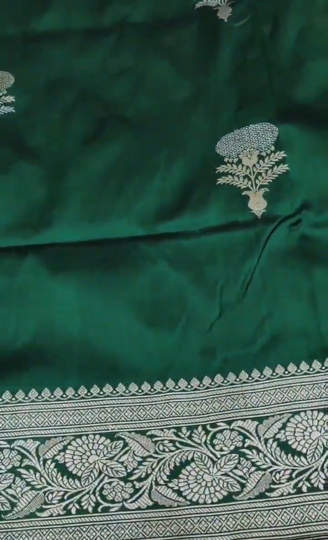 Bottle Green Banarasi Handloom Katan Silk Meenakari Saree