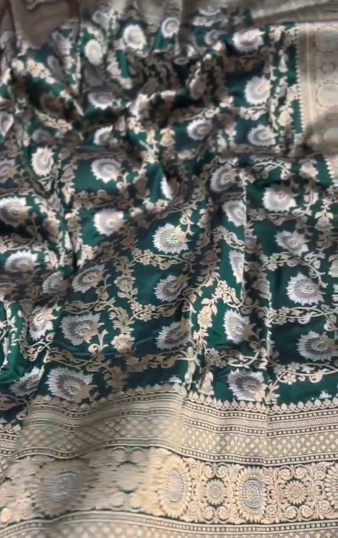Bottle Green Banarasi Handloom Katan Silk Meenakari Saree