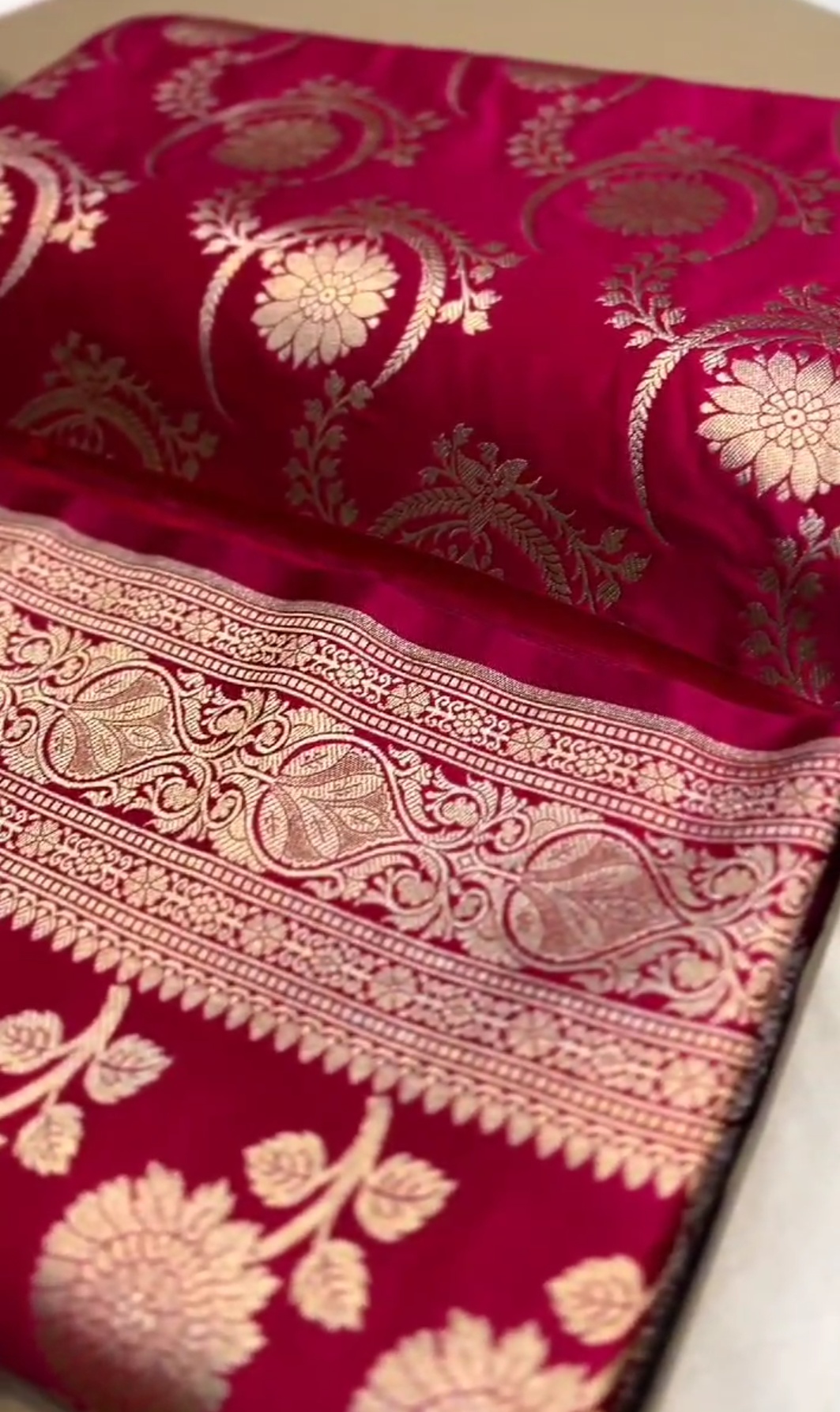 Dark Pink Banarasi Mashru Soft Silk Saree