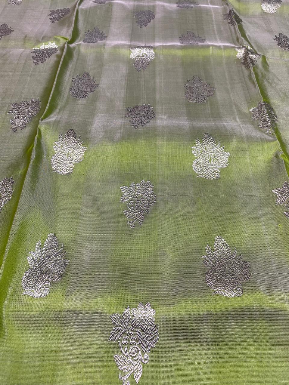 Dual Tone Lime Green Venkatagiri Handloom Pure Pattu Silk Saree