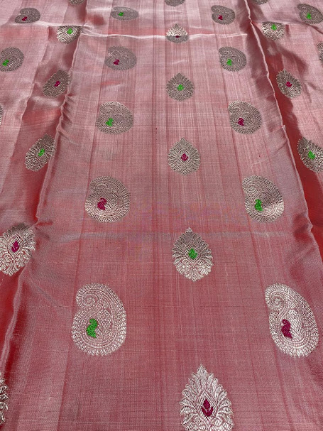 Dual Tone Pink Venkatagiri Handloom Pattu Silk Meenakari Saree