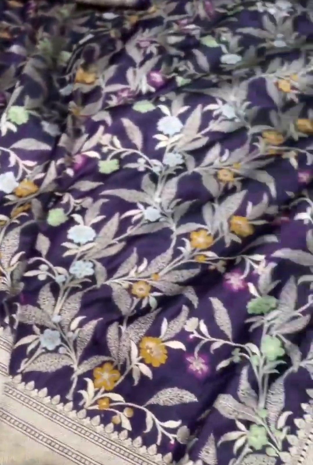 Dark Purple Banarasi Handloom Katan Silk Brocade Saree