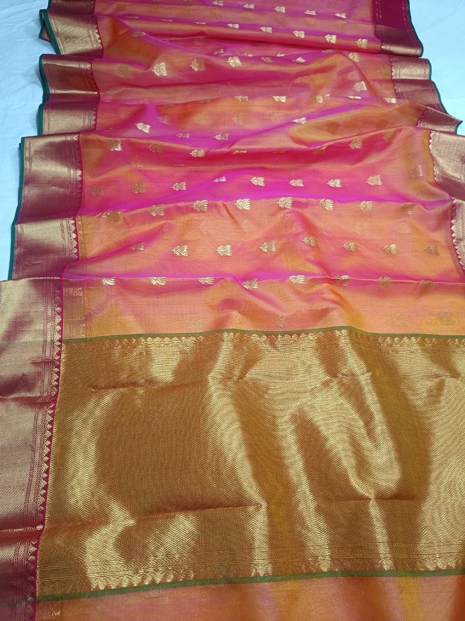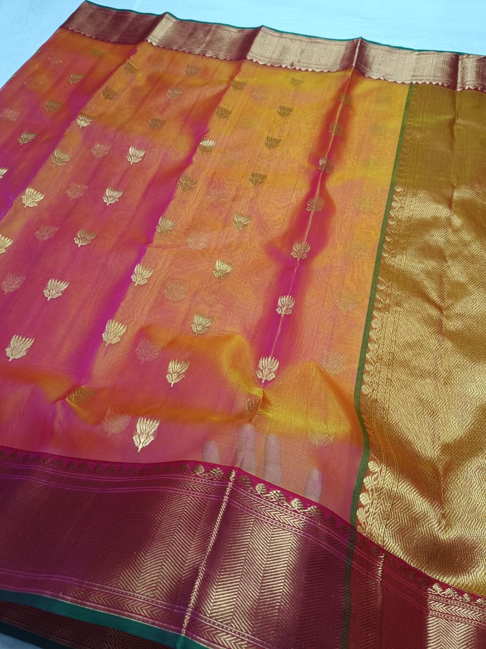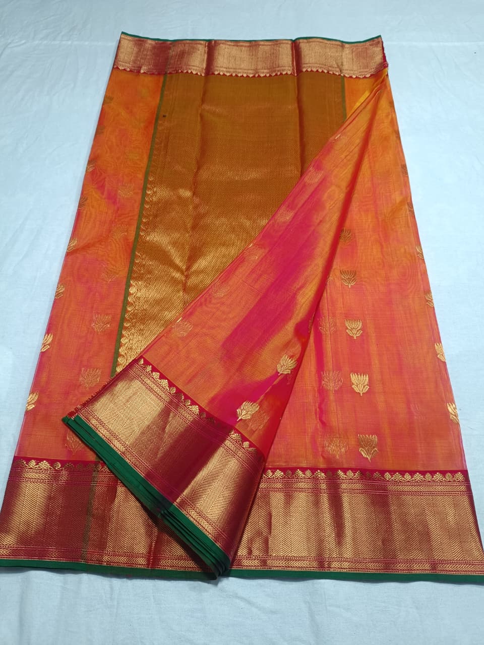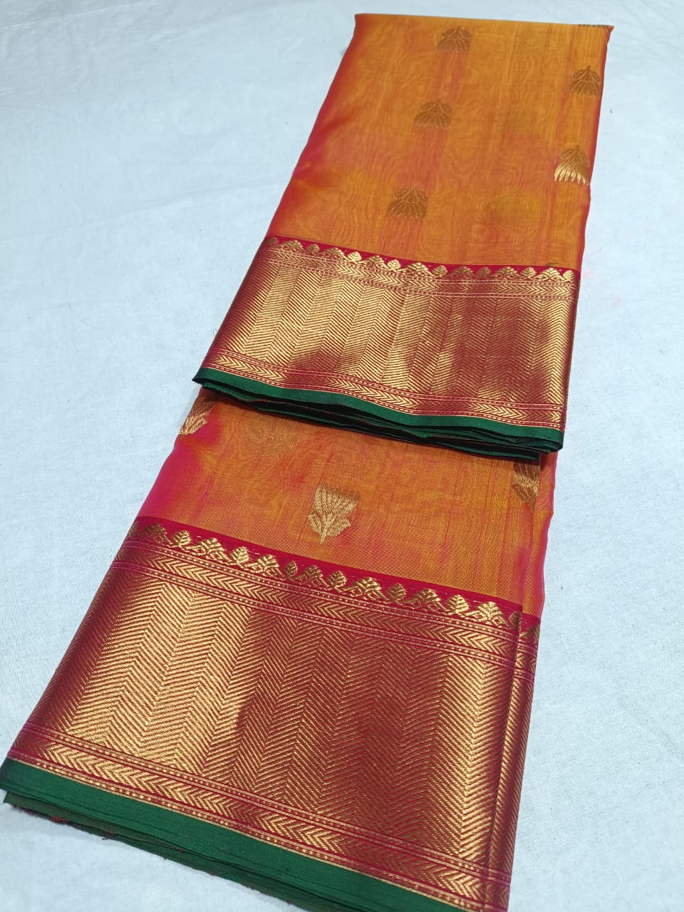 Dual Tone Orange Chanderi Handloom Katan Silk Nakshi Saree