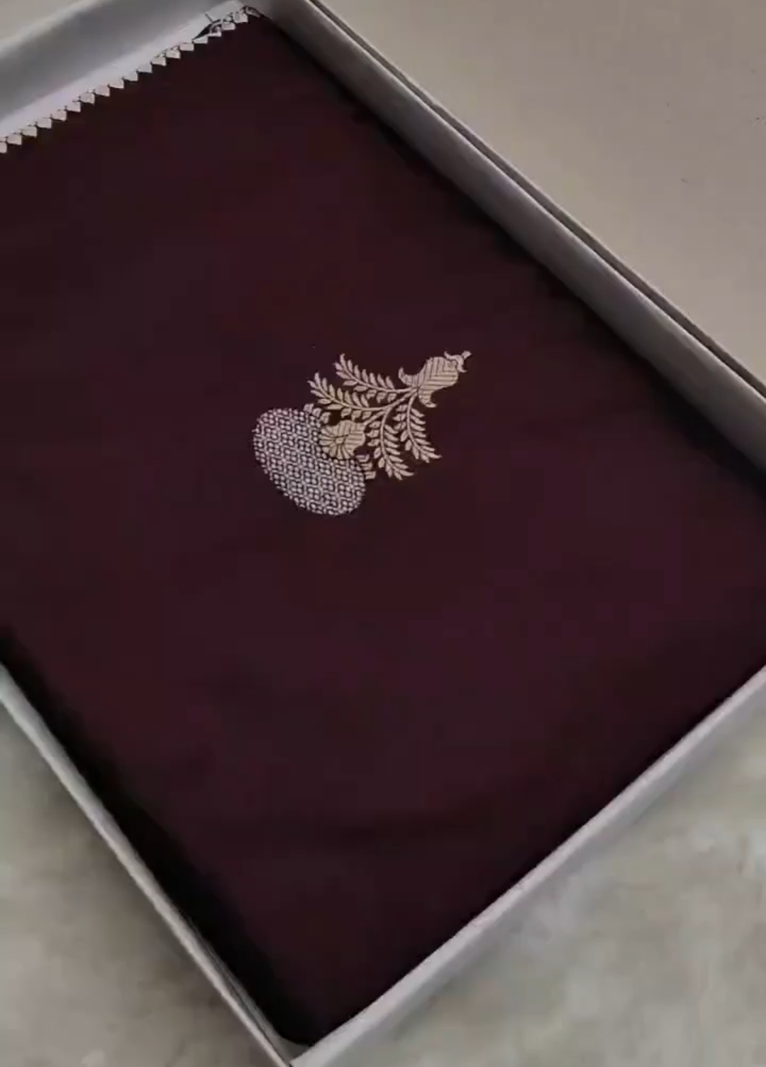 Grey & Wine Banarasi Handloom Katan Silk Saree