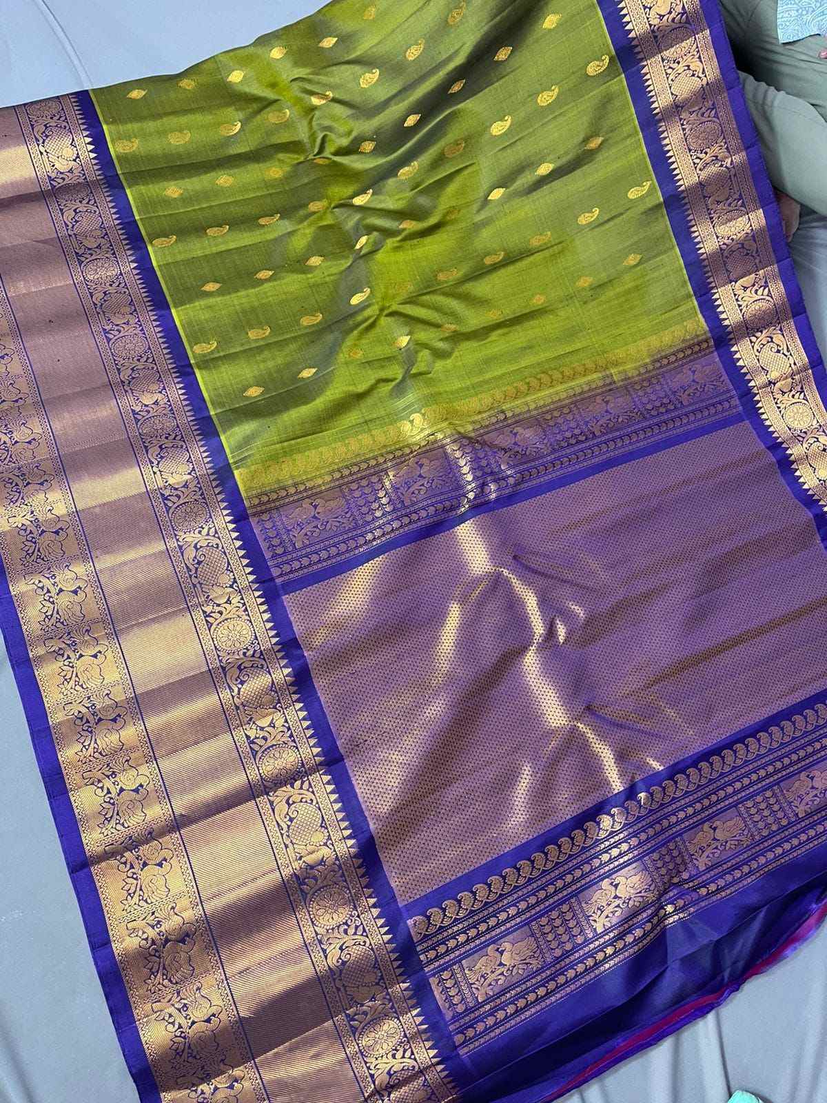 Dual Tone Green Gadwal Handloom Pattu Silk Brocade Saree