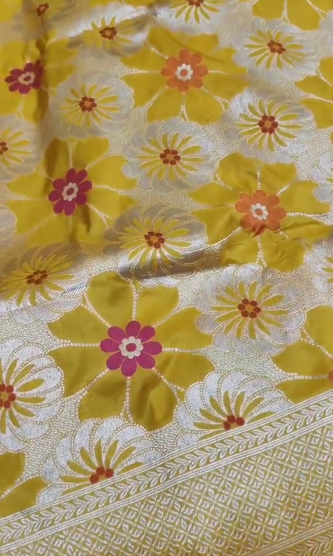 Golden Yellow Banarasi Handloom Katan Silk Meenakari Saree