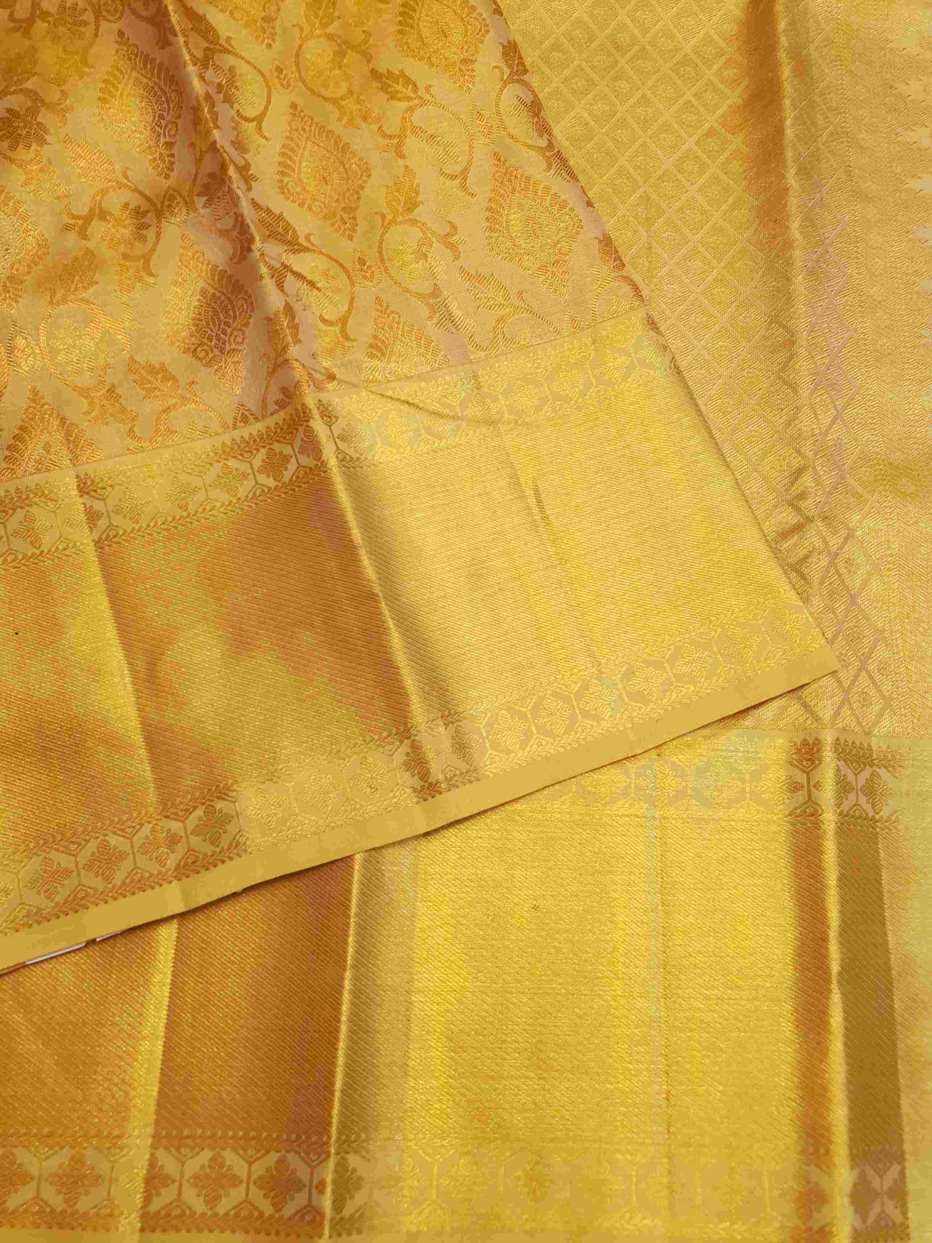 Yellow Gold Kanchipuram Handloom 2G Gold Brocade Pattu Silk Saree