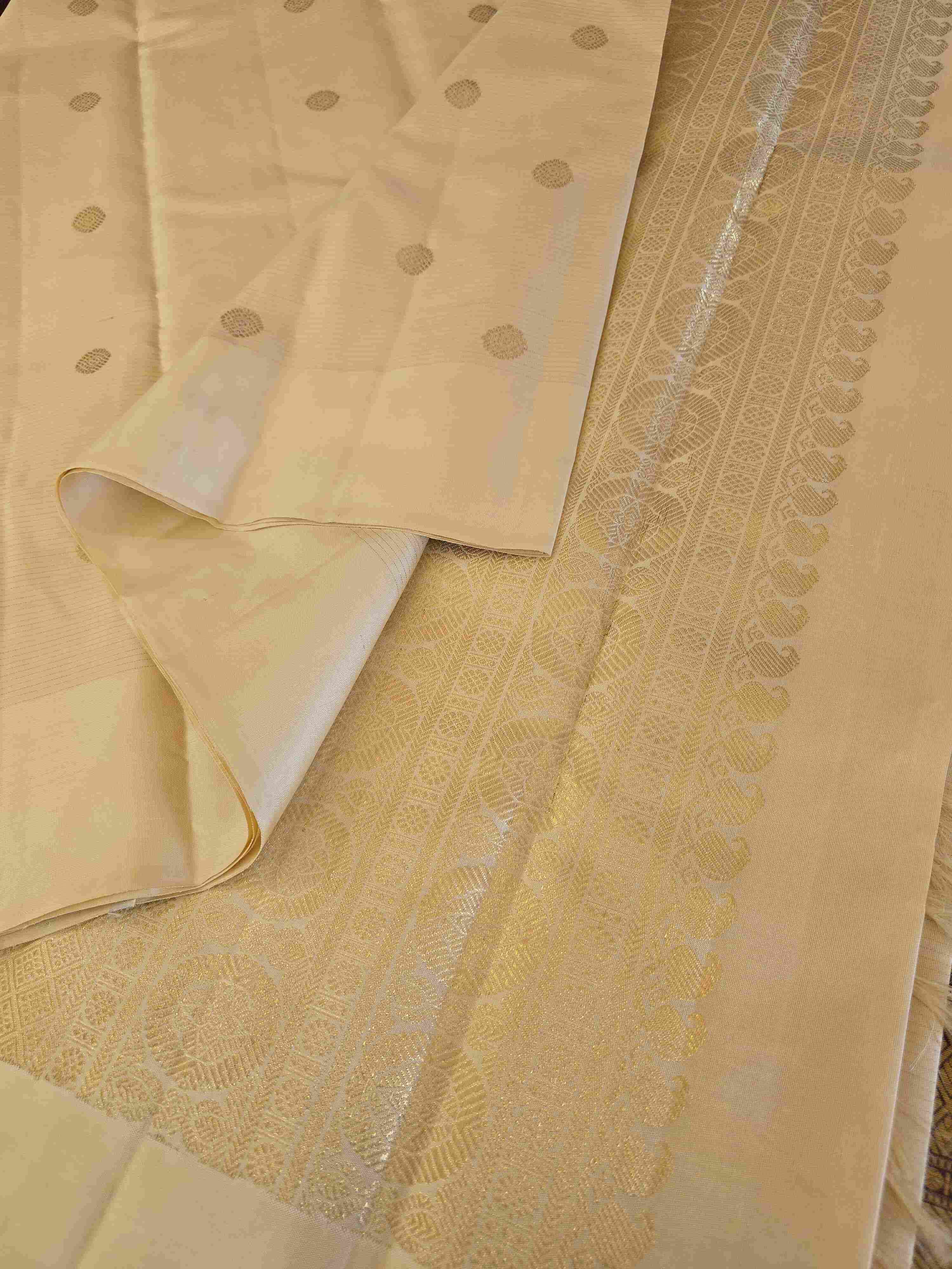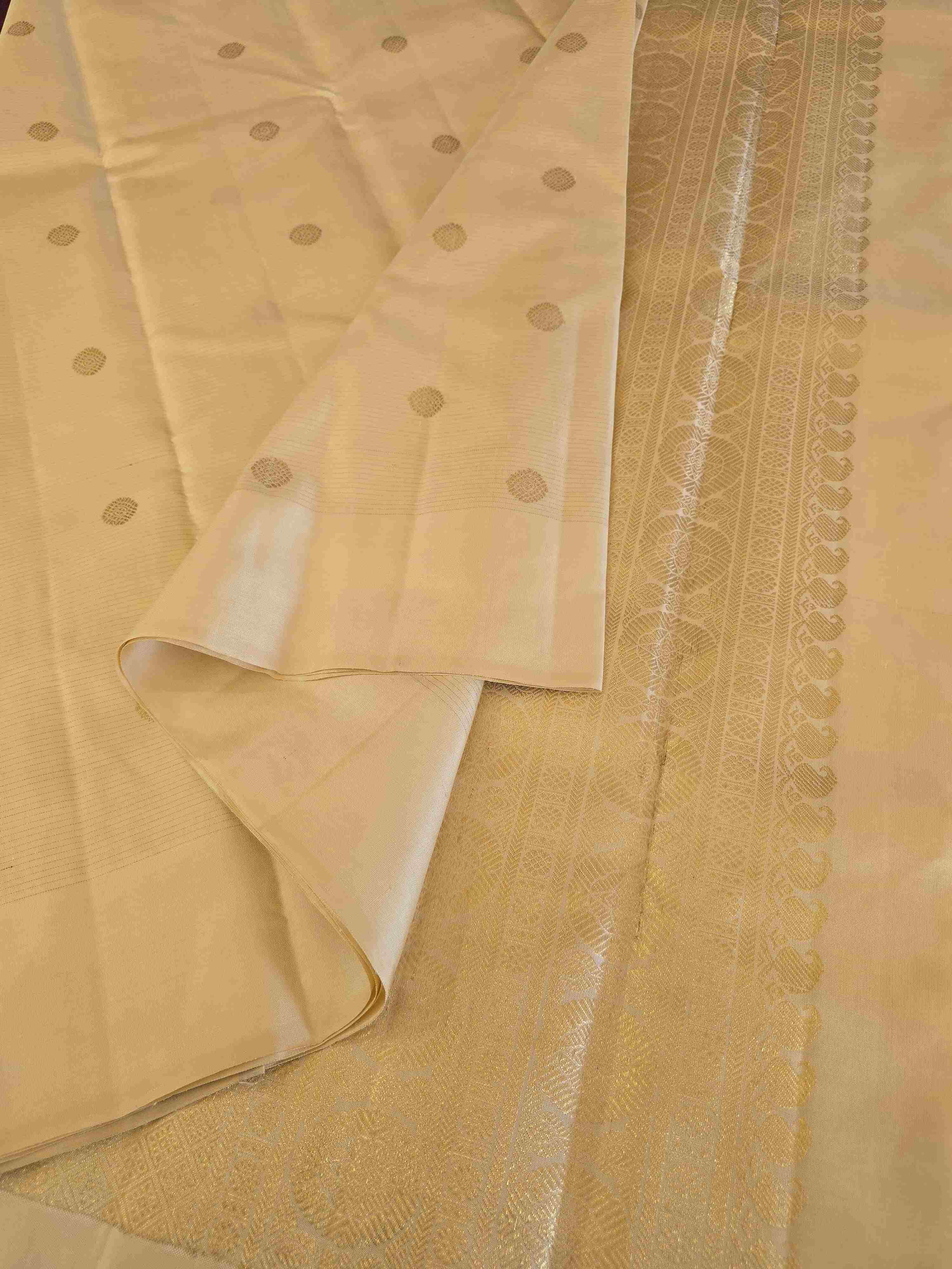 Cream Kanchipuram Handloom 4G Pure Gold Pattu Silk Saree