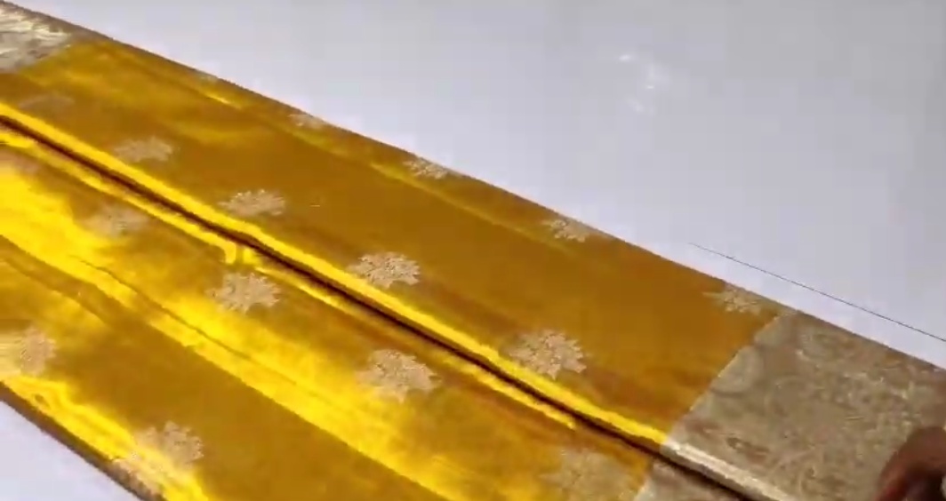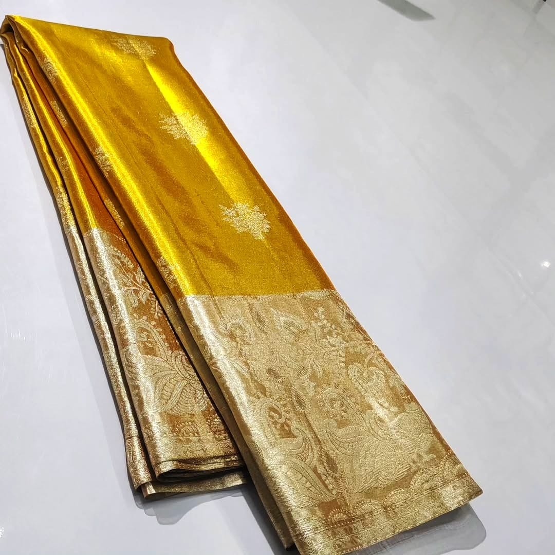 Golden Yellow Kanchipuram Handloom Tissue Brocade 1G Gold Bridal Saree