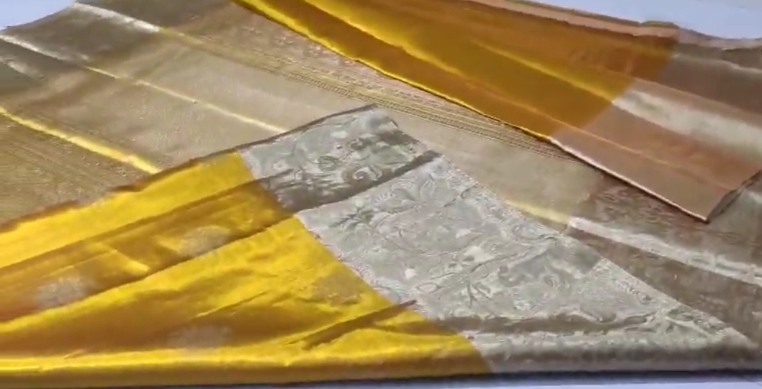 Yellow Kanchipuram Handloom Tissue Brocade Meenakari Silk Saree
