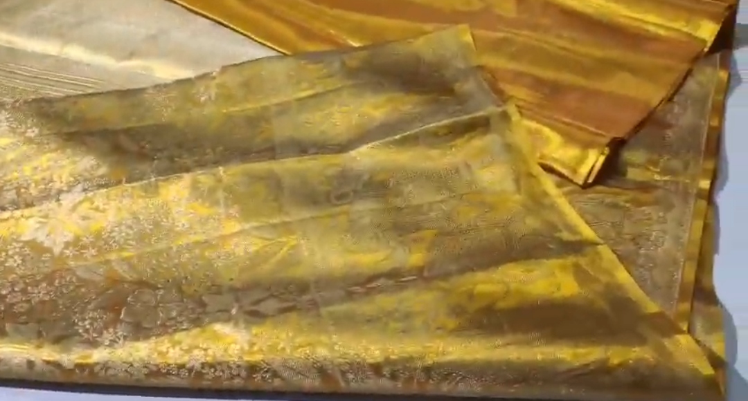Mustard Kanchipuram Handloom 4D Tissue Brocade Silk Saree