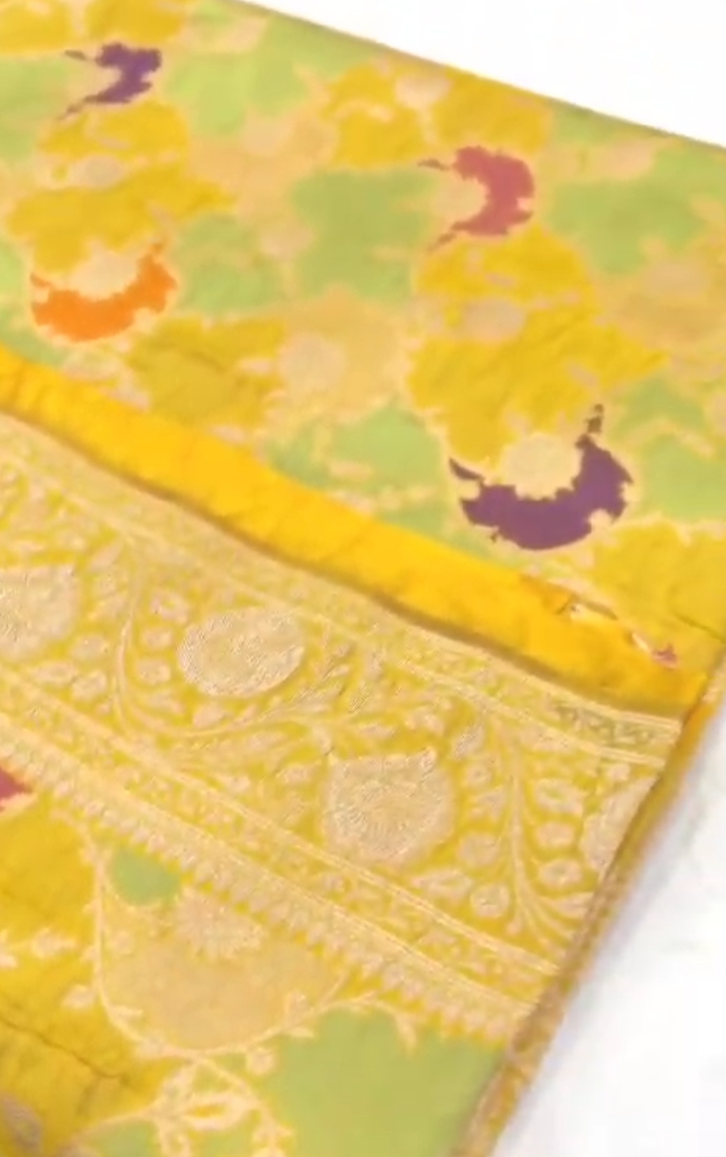 Golden Yellow Banarasi Handloom Katan Silk Meenakari Saree