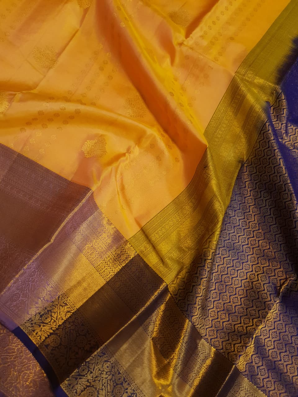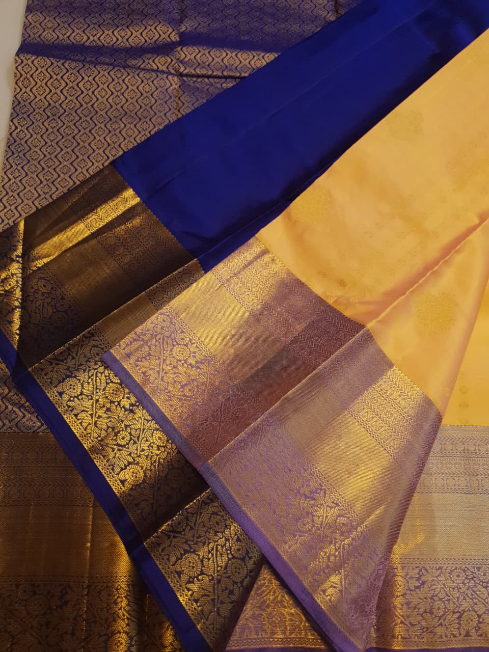 Golden Yellow Kanchipuram Handloom 2G Gold Pattu Silk Saree