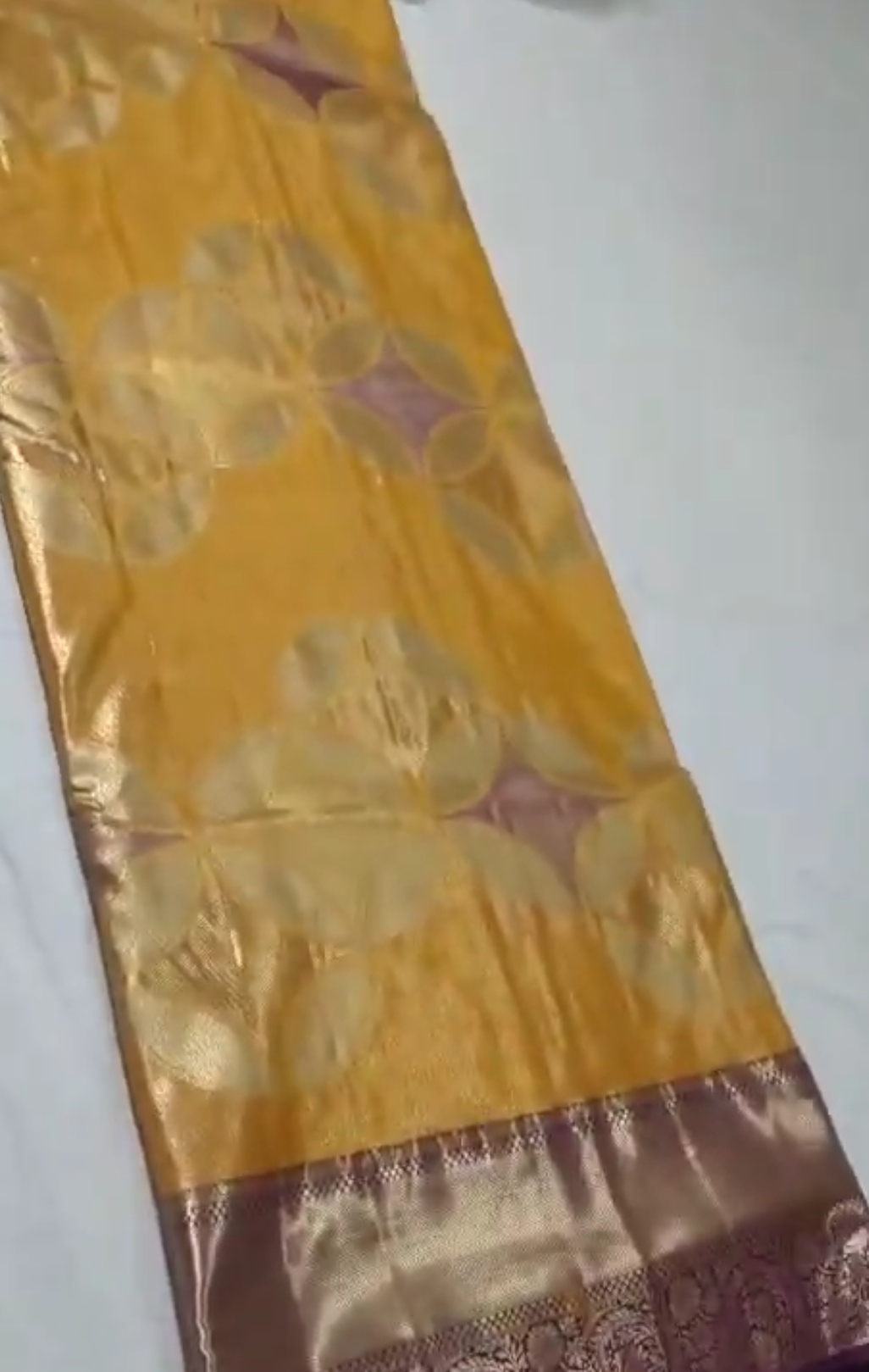 Golden Yellow Kanchipuram Tissue Silk Meenakari Saree