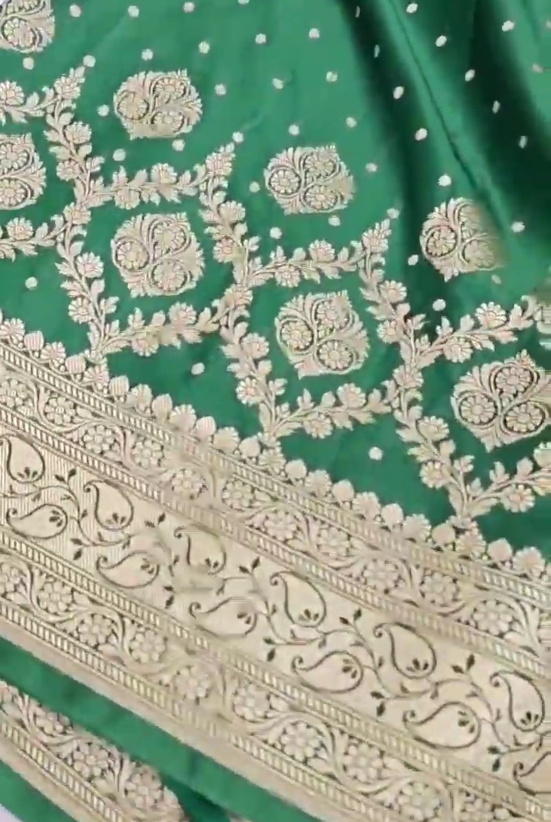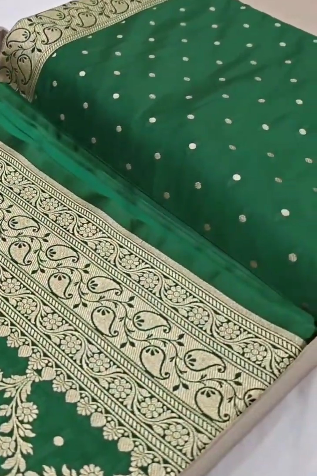 Bottle Green Banarasi Mashru Soft Silk Saree