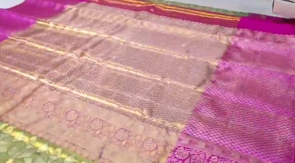 Gold and Hot Pink Kanchipuram Handloom Tissue Brocade Silk Saree