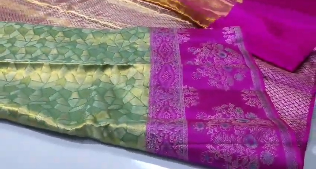 Geometric Design, Brocade, Meenakari, Silver Zari, Gold Zari