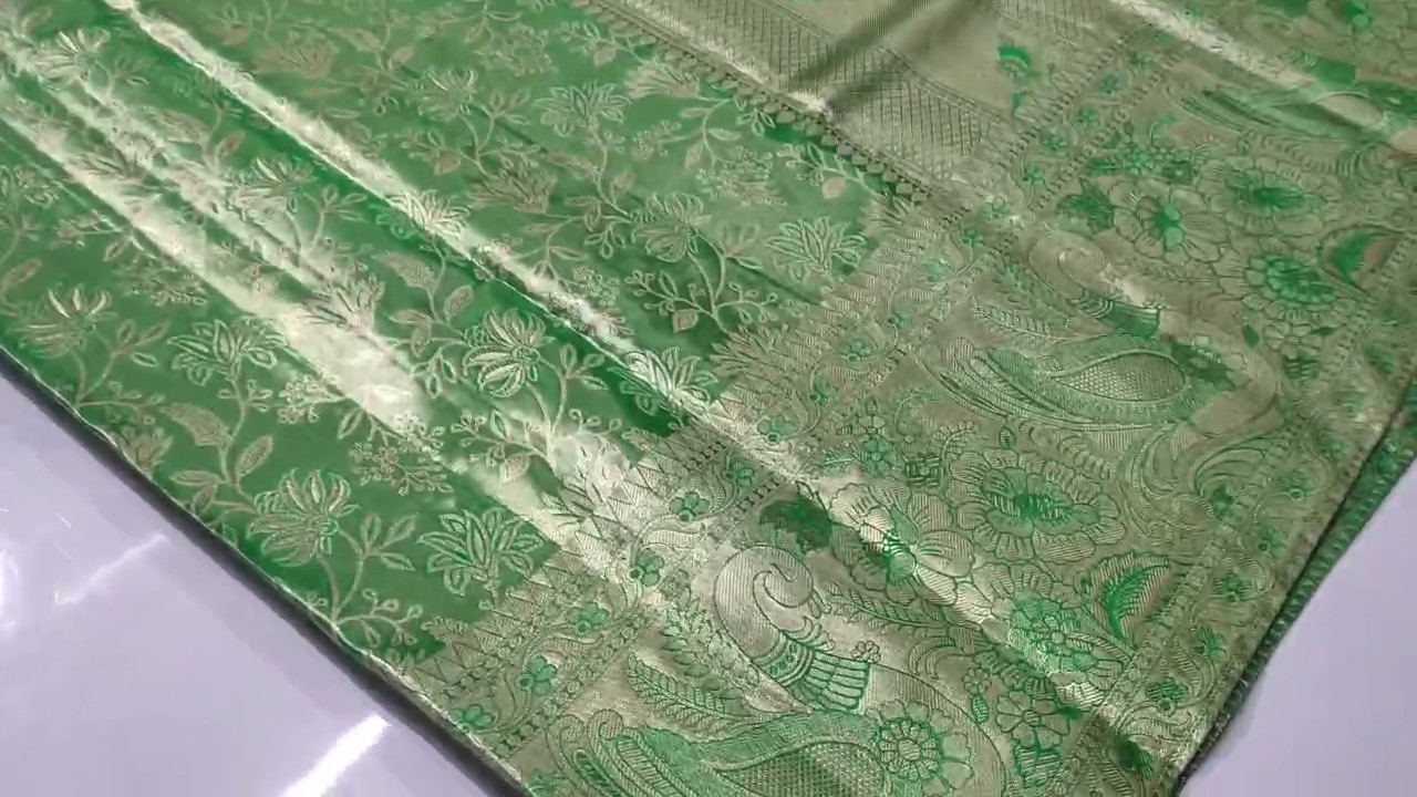 Green Kanchipuram Handloom Tissue Brocade Silk Meenakari Saree