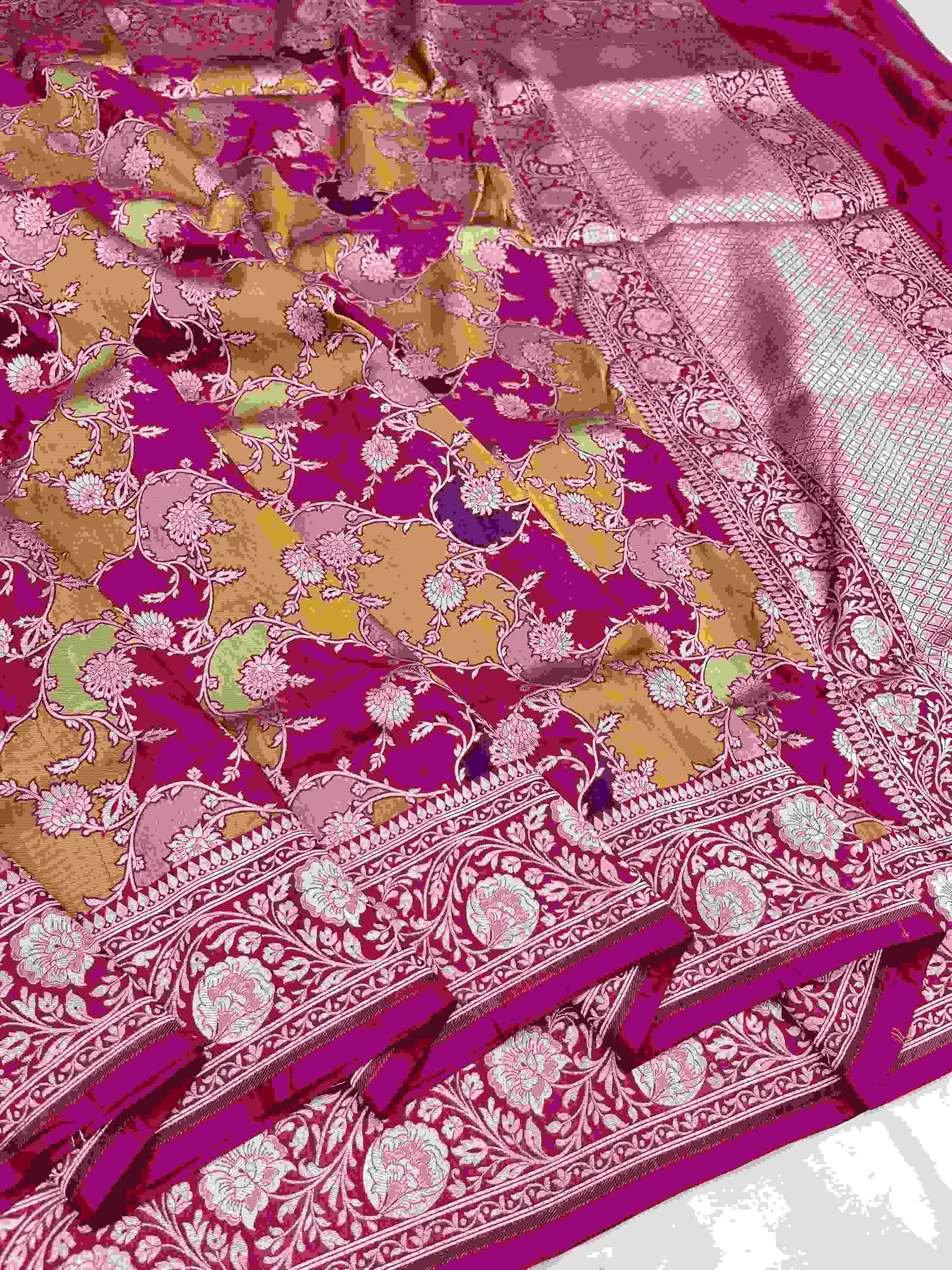 Dual Tone Hot Pink Banarasi Handloom Katan Silk Meenakari Sare