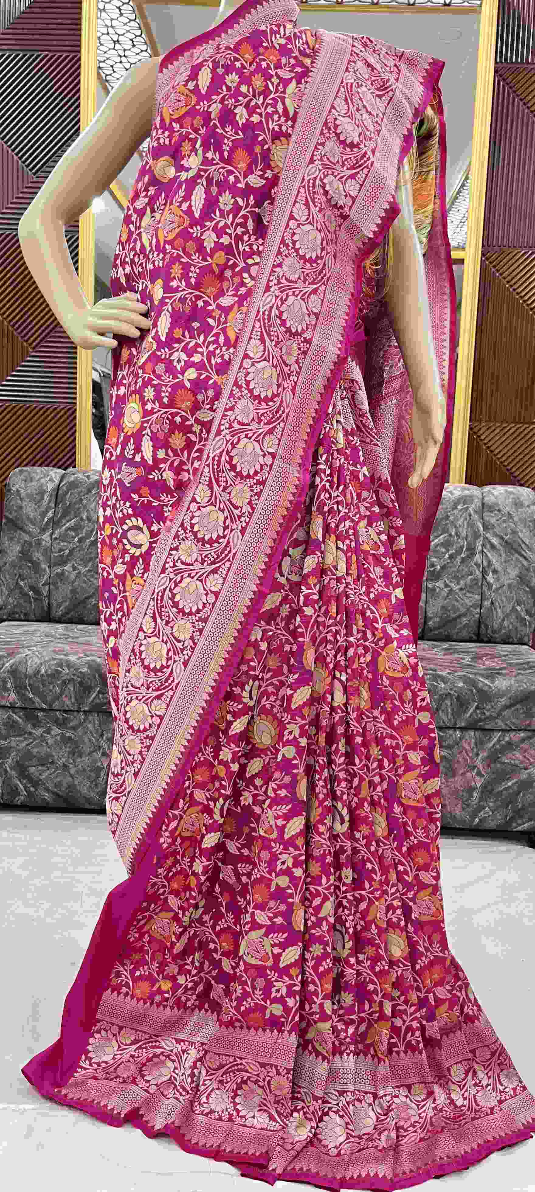Hot Pink Banarasi Handloom Katan Silk Meenakari Saree