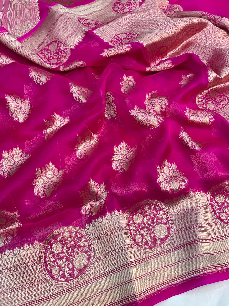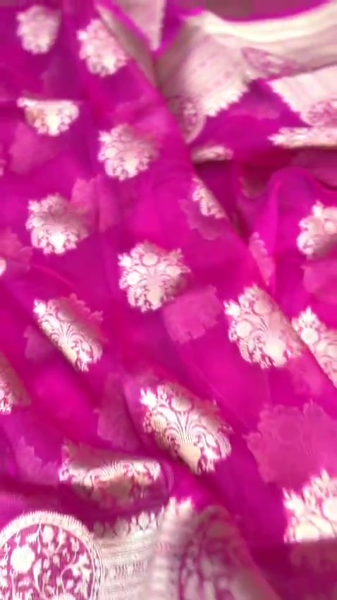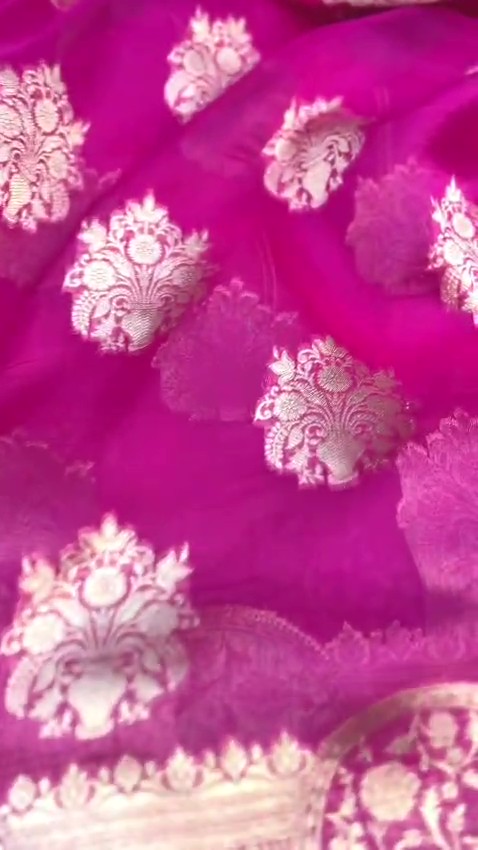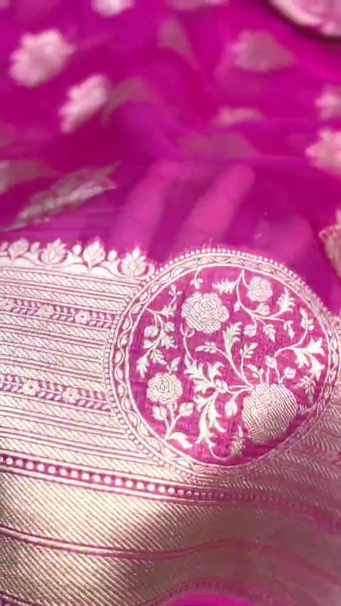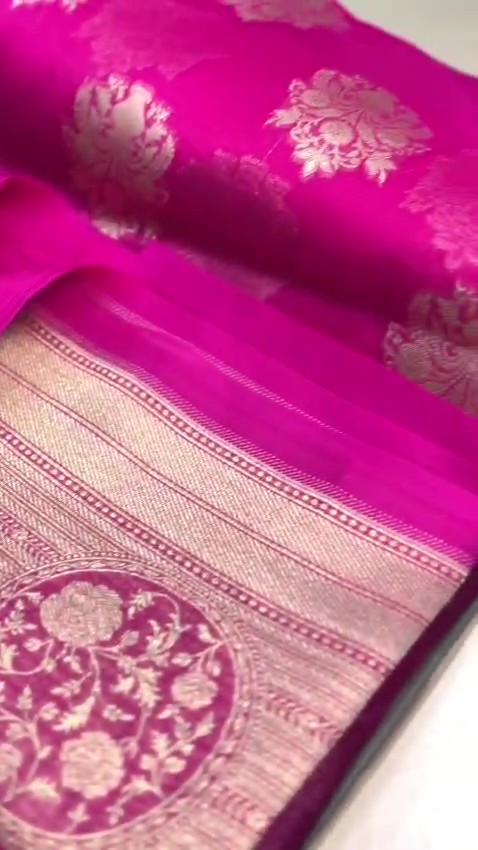 Hot Pink Banarasi Handloom Kora Organza Silk Saree