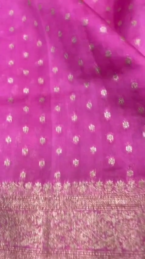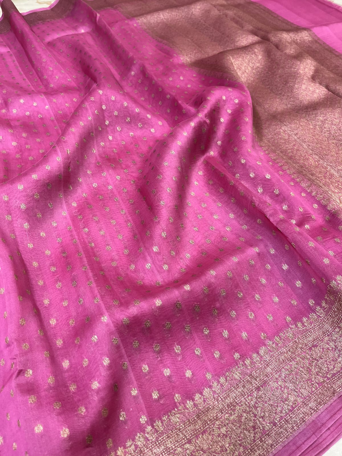 Hot Pink Banarasi Handloom Kora Organza Silk Saree