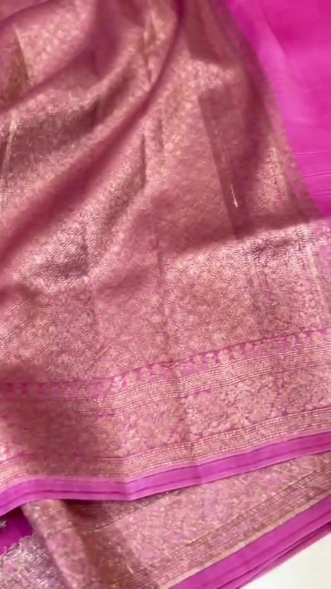 Onion Pink Banarasi Handloom Rangkat Kora Tissue Silk Saree