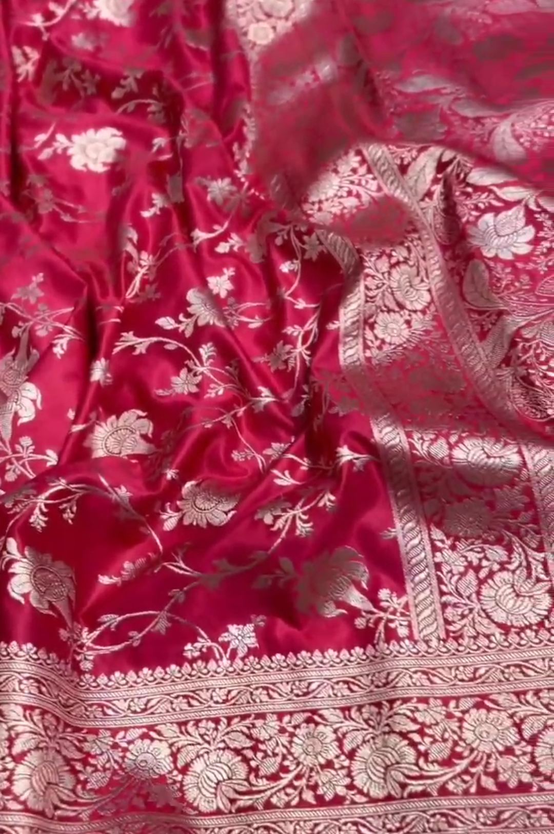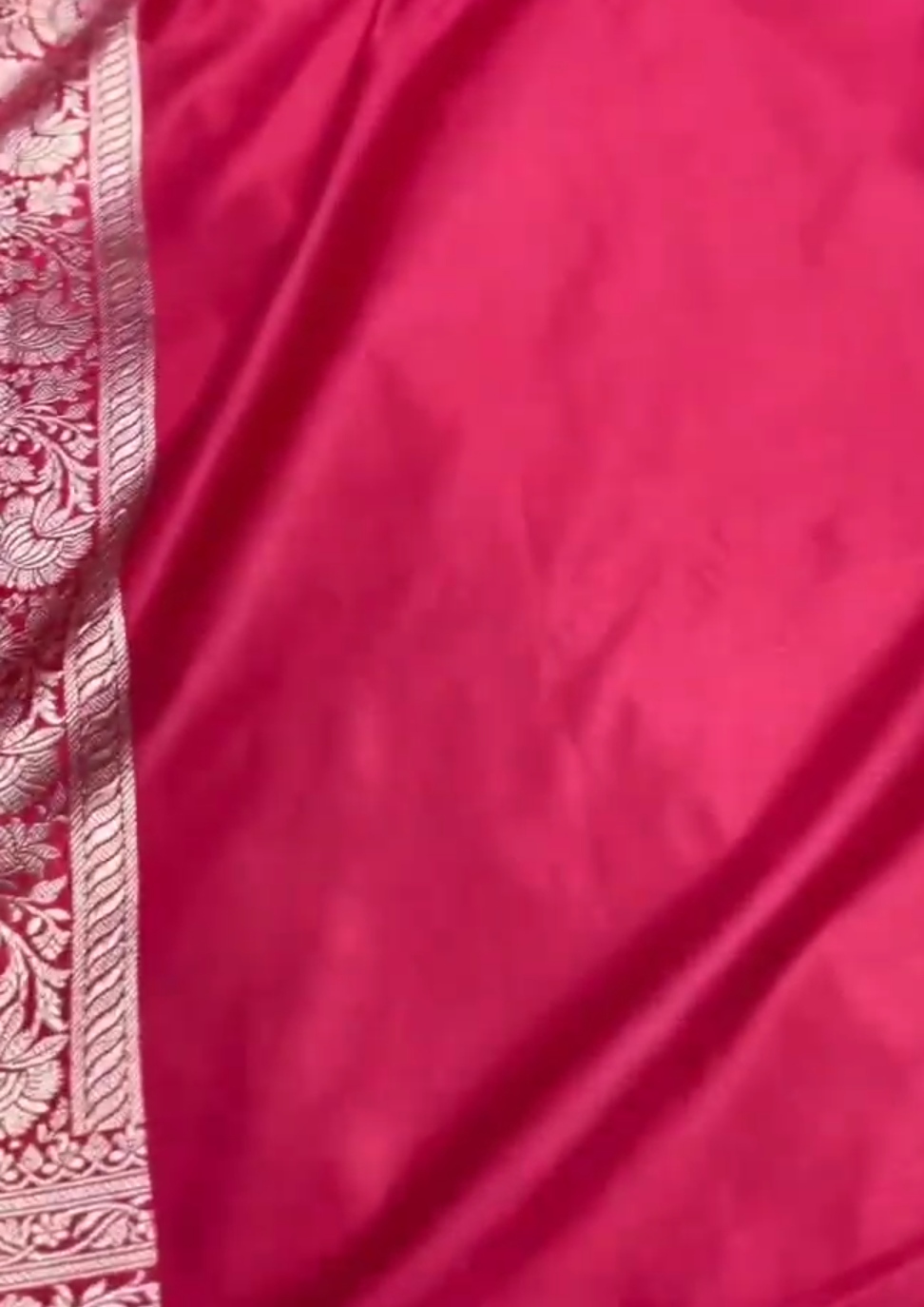 Hot Pink Banarasi Mashru Soft Silk Saree