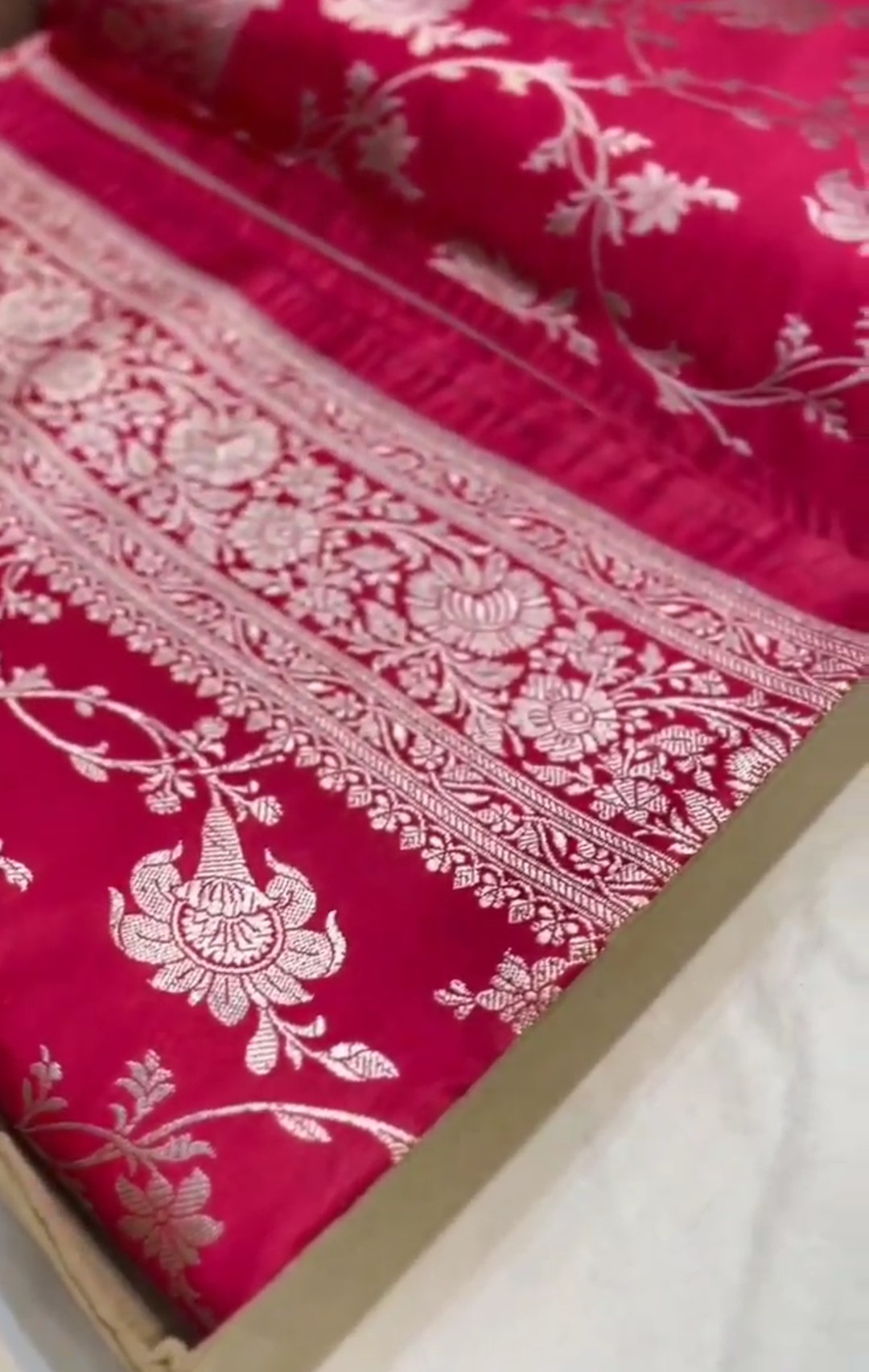 Dark Pink Banarasi Mashru Soft Silk Saree