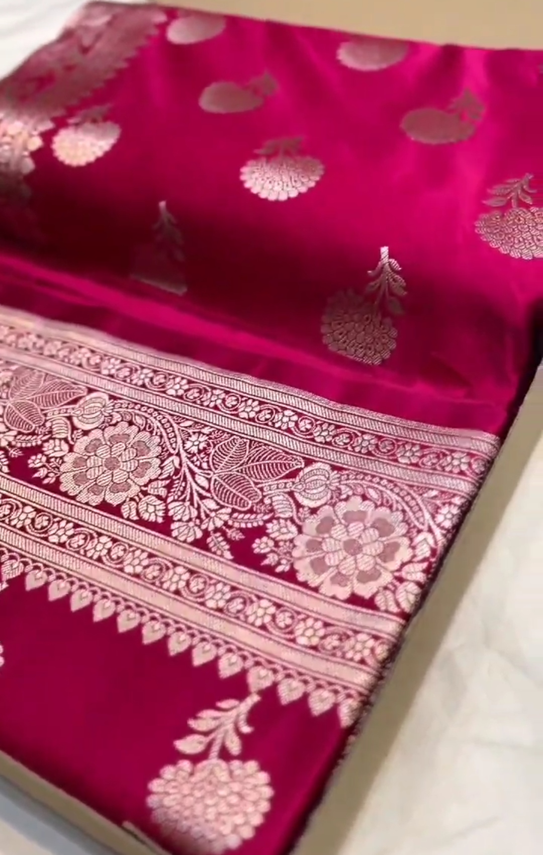 Dark Pink Banarasi Mashru Soft Silk Saree