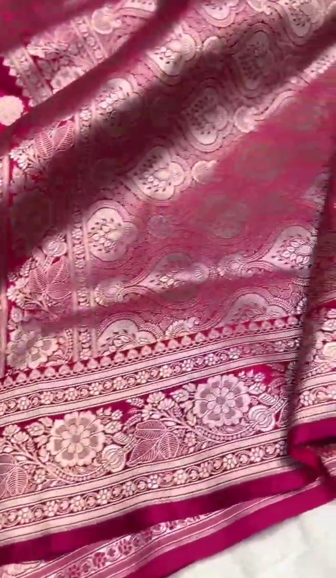 Hot Pink Banarasi Handloom Rangkaat Mashru Silk Saree
