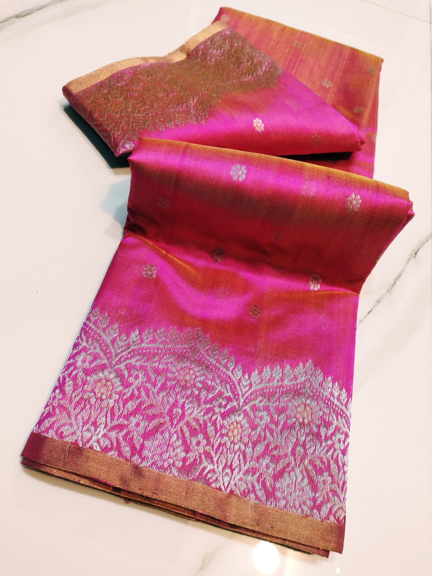 Hot Pink Chanderi Handloom Pattu Silk Brocade Saree