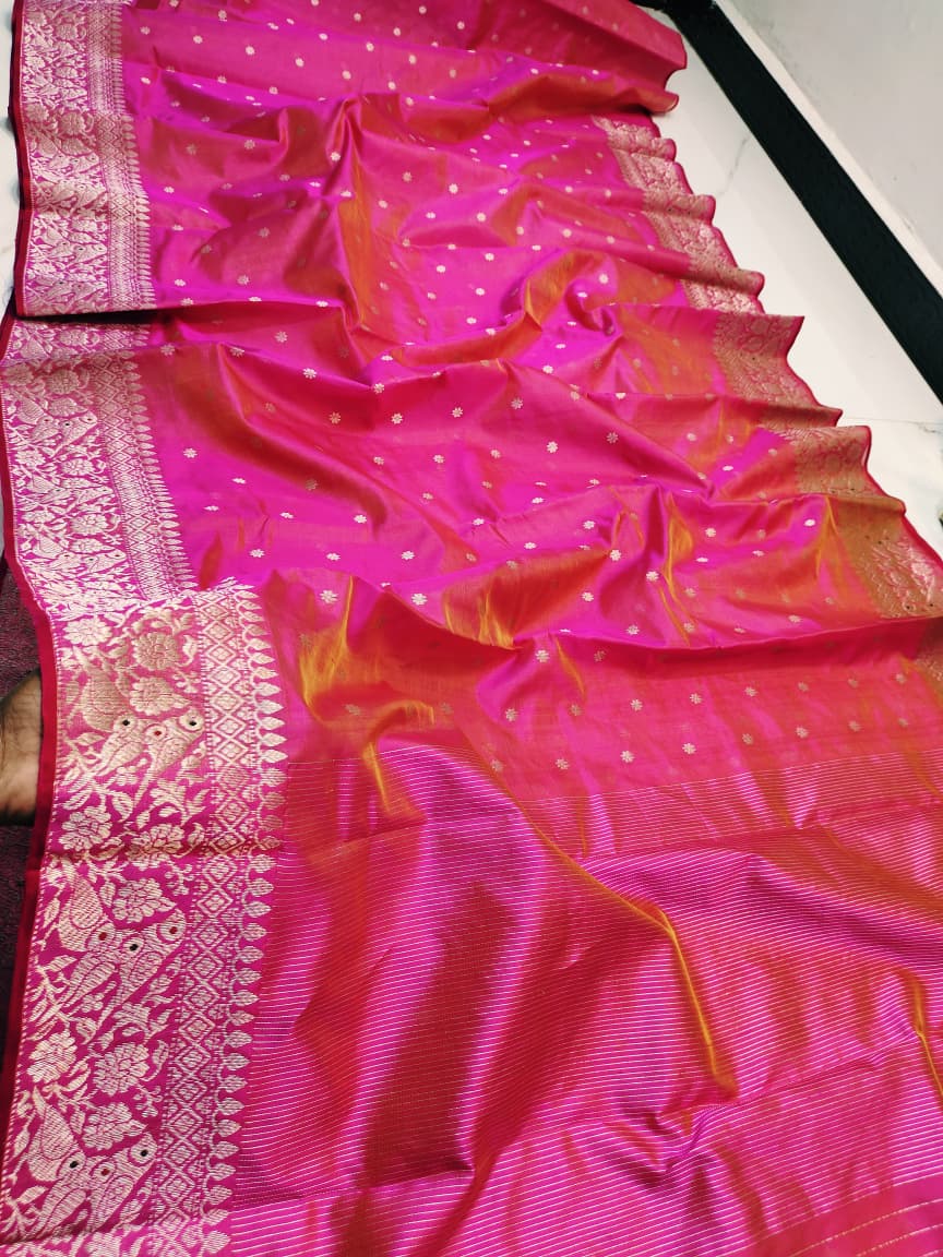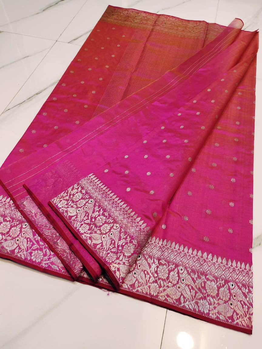 Hot Pink Chanderi Handloom Pattu Silk Meenakari Saree