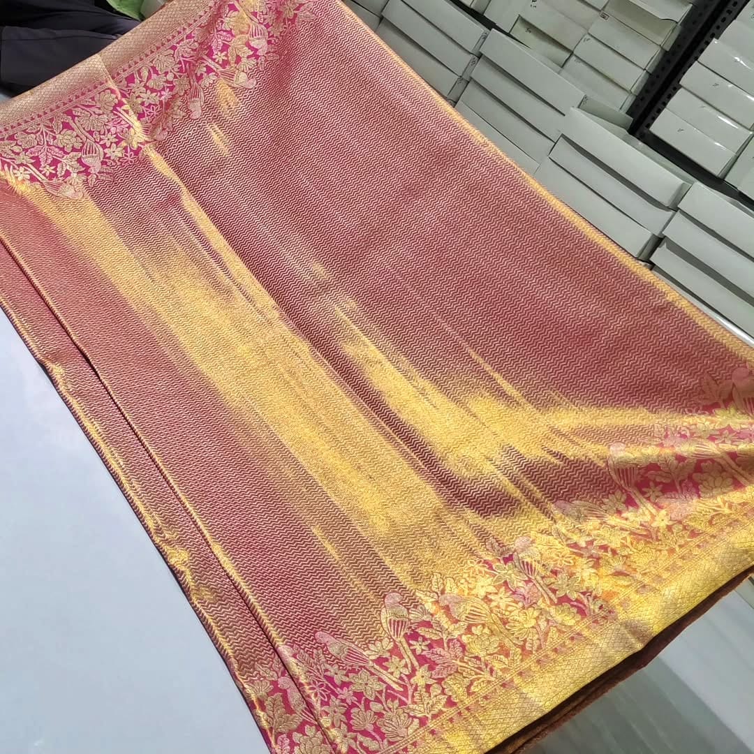 Pink Kanchipuram Handloom Tissue Brocade Silk Saree