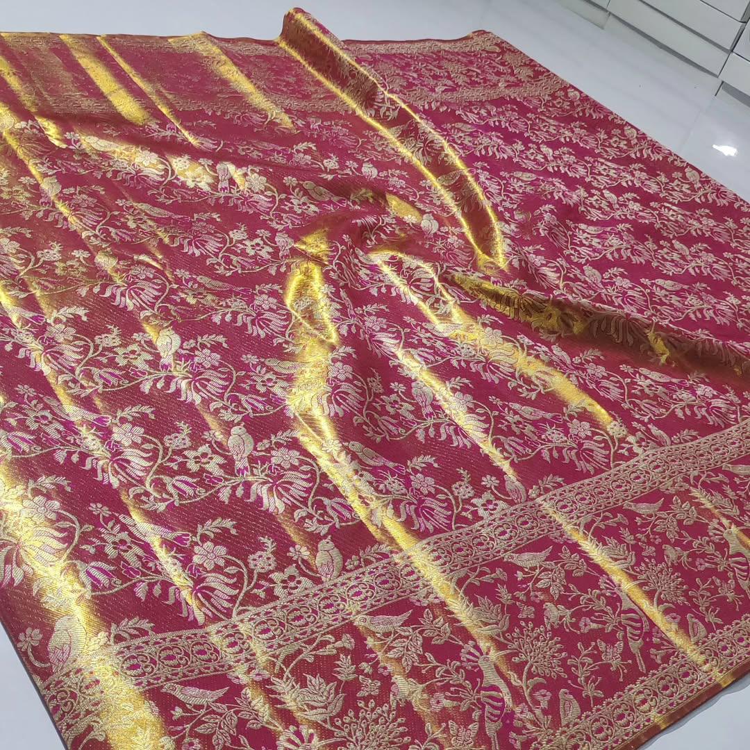 Magenta Kanchipuram Handloom Tissue Brocade Silk Meenakari Saree