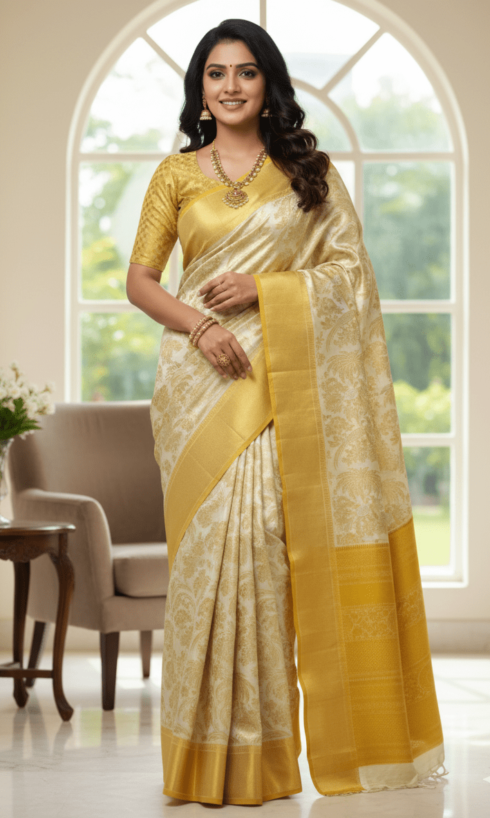 Gold Kanchipuram Handloom Tissue Brocade Silk Saree