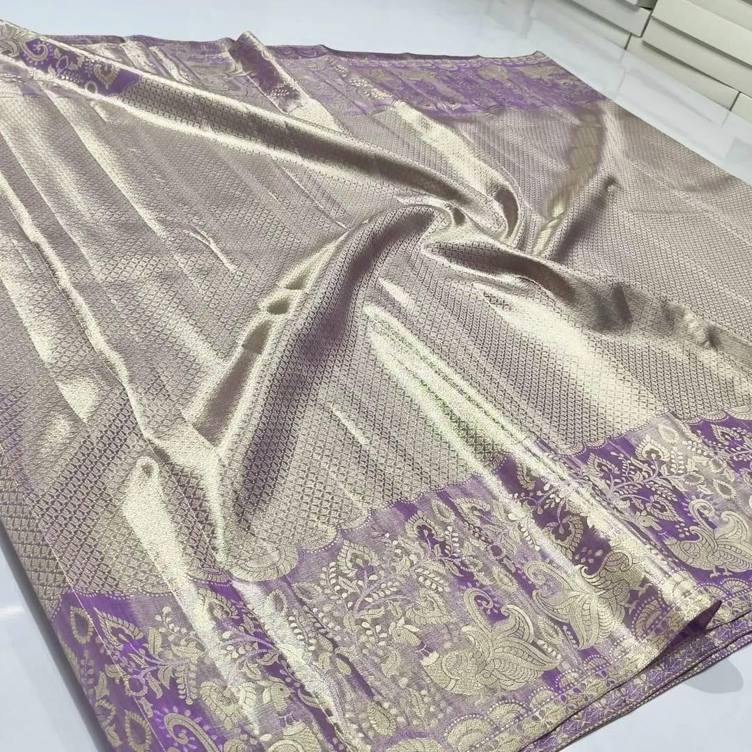 Lavender Kanchipuram Handloom Tissue Brocade Silk Saree