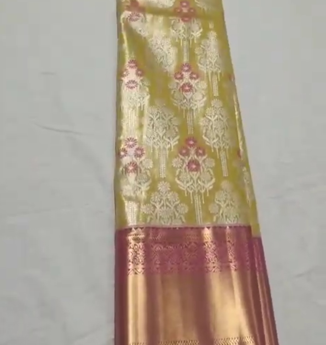 Lemon Kanchipuram Semi Tissue Silk Meenakari Saree
