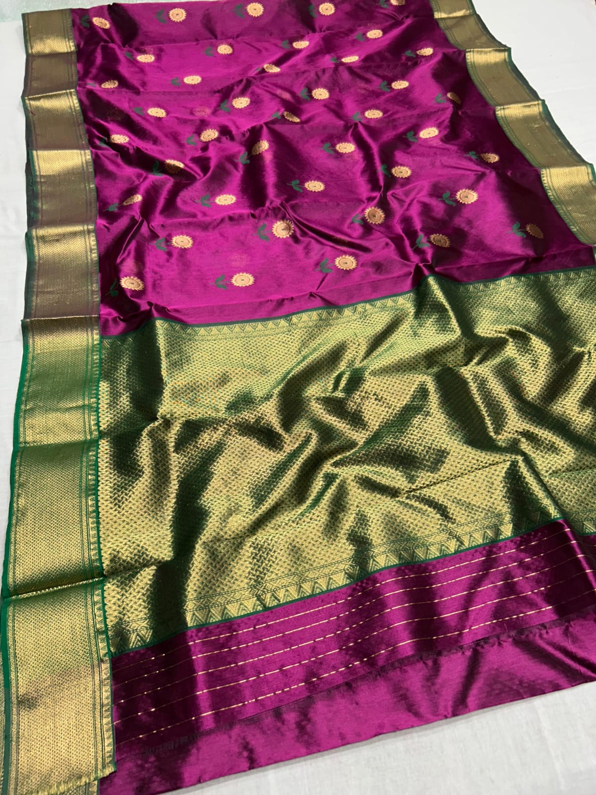 Purple Chanderi Handloom Pattu Silk Nakshi Saree