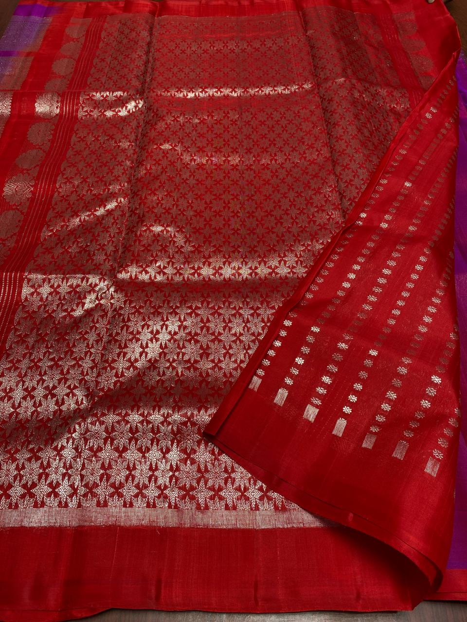 Dual Tone Red Venkatagiri Handloom Pattu Silk Meenakari Saree