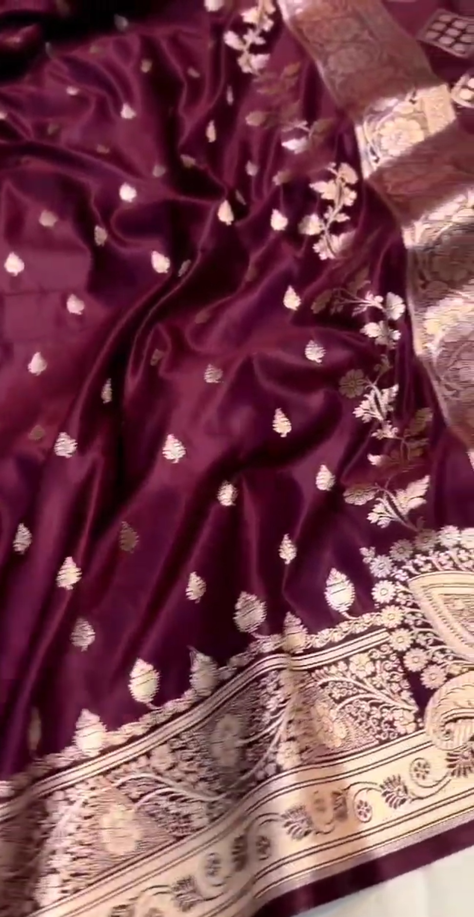 Wine Banarasi Mashru Soft Silk Saree