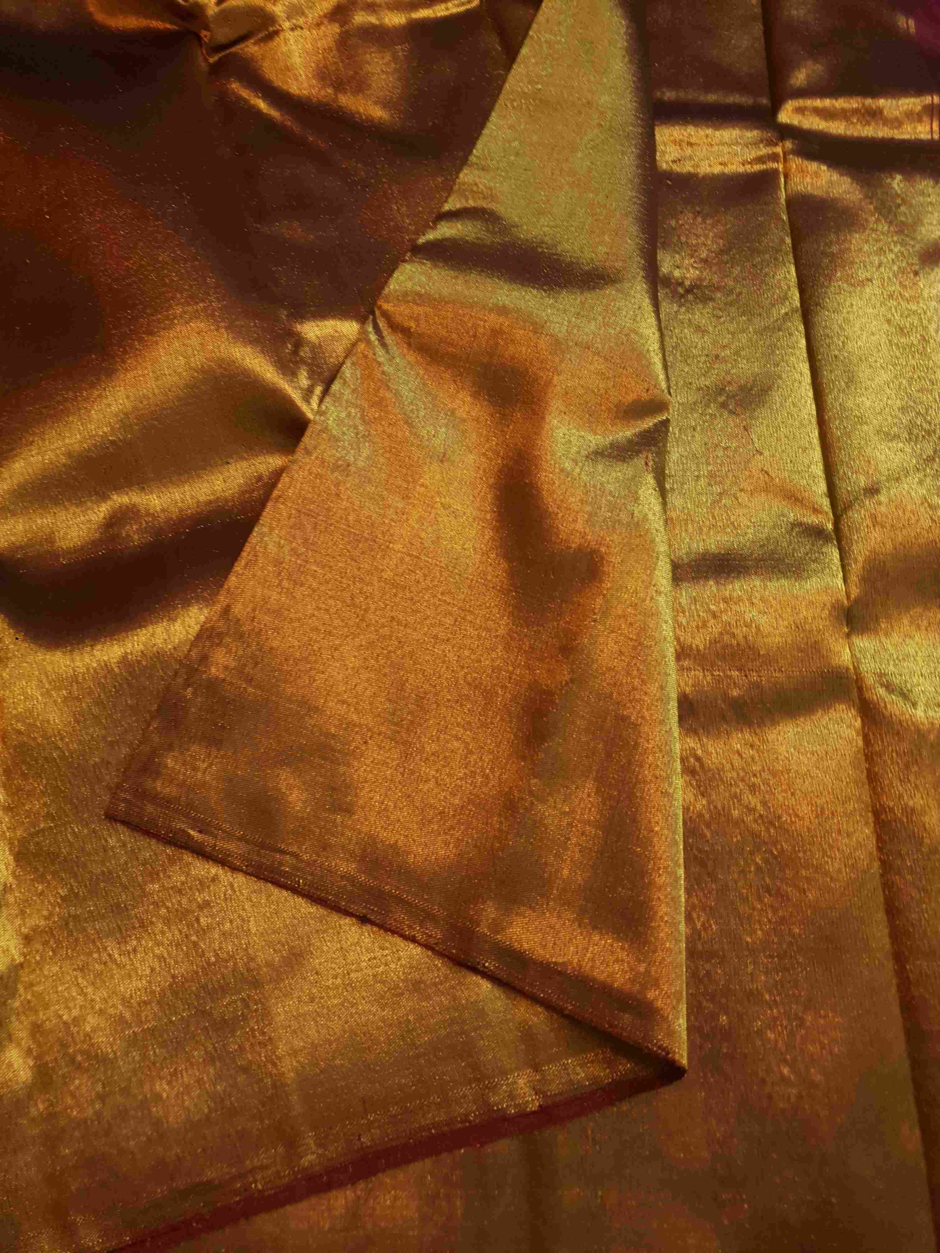 Dual Tone Orange Chanderi Handloom Katan Silk Nakshi Saree