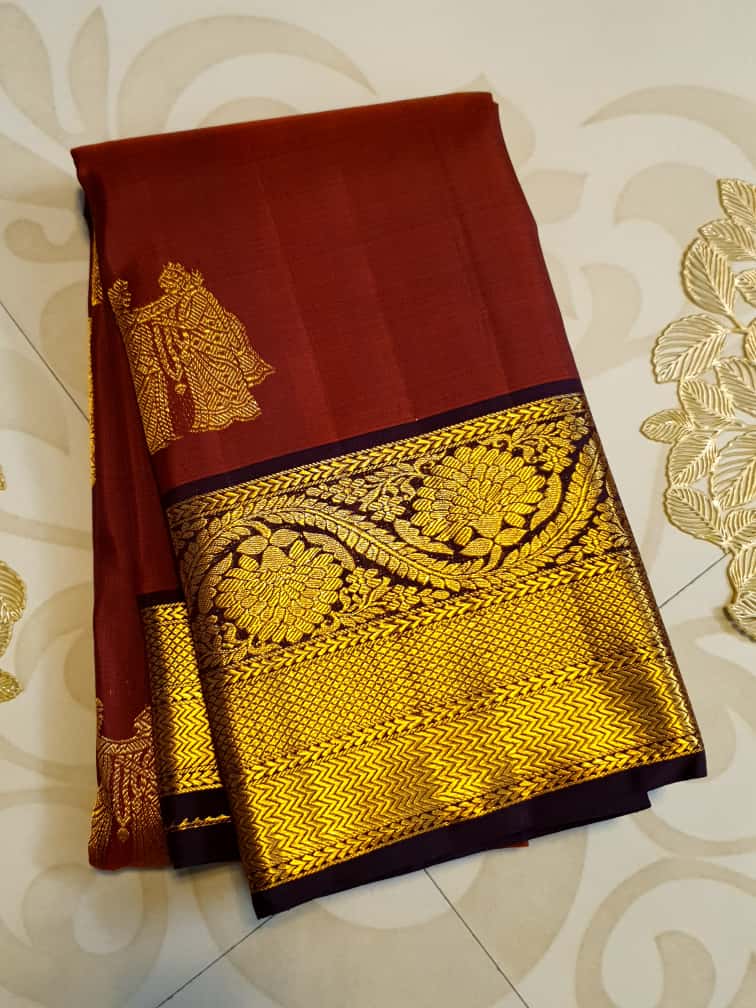 Dark Brown Kanchipuram Handloom 2G Gold Pattu Silk Saree