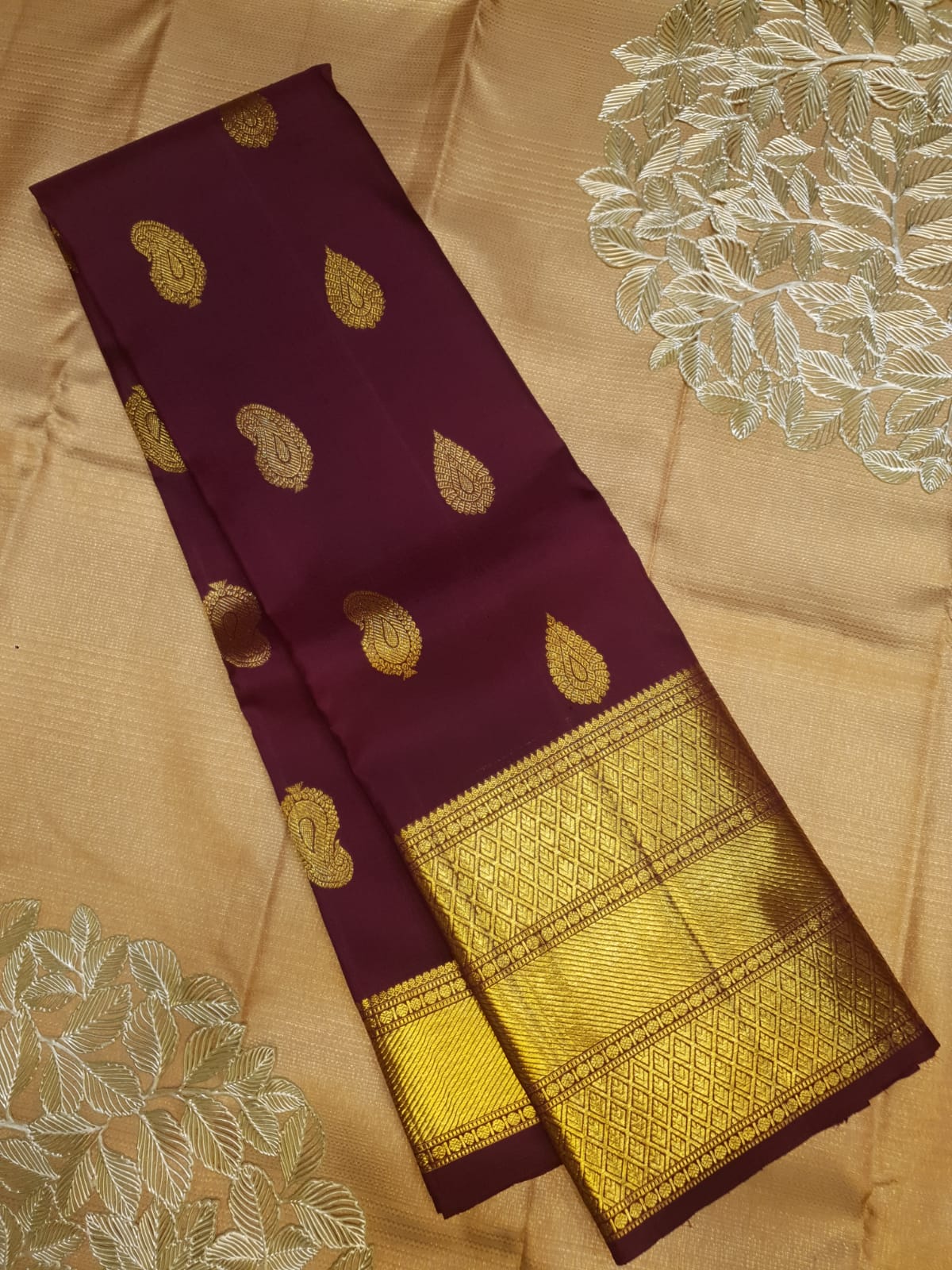 Wine Kanchipuram Handloom 2G Gold Pattu Silk Saree