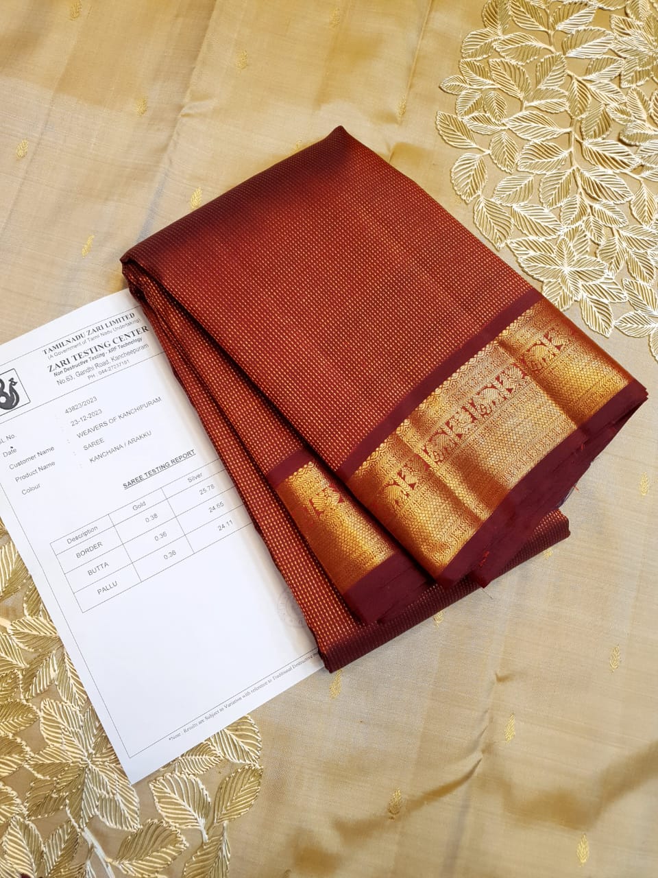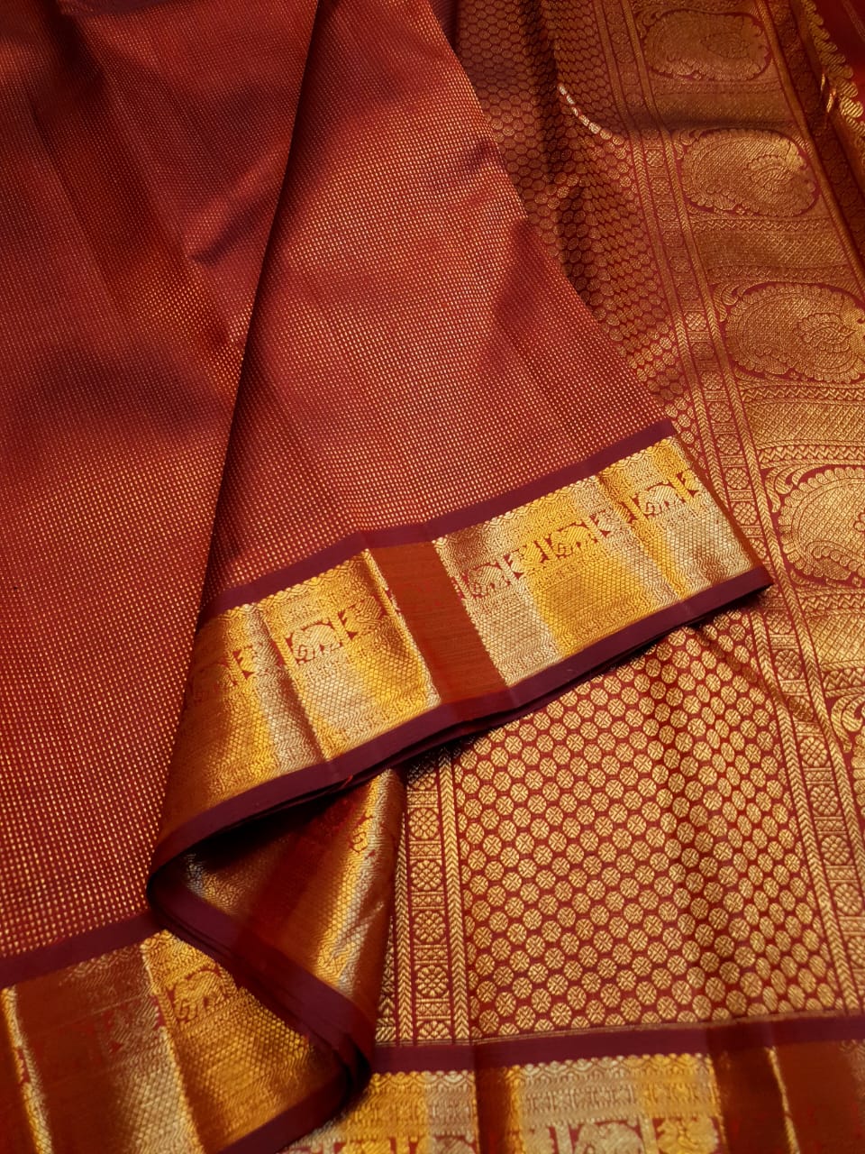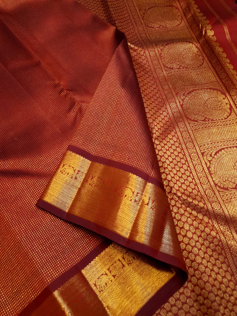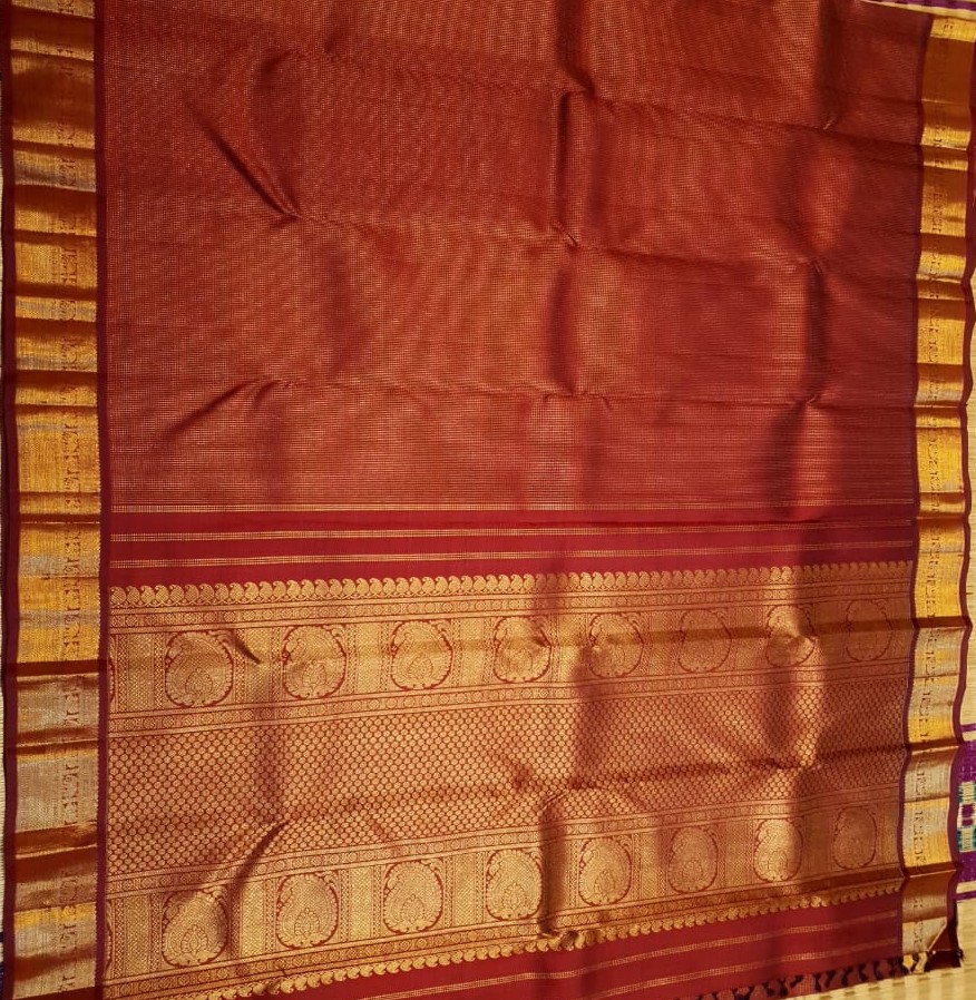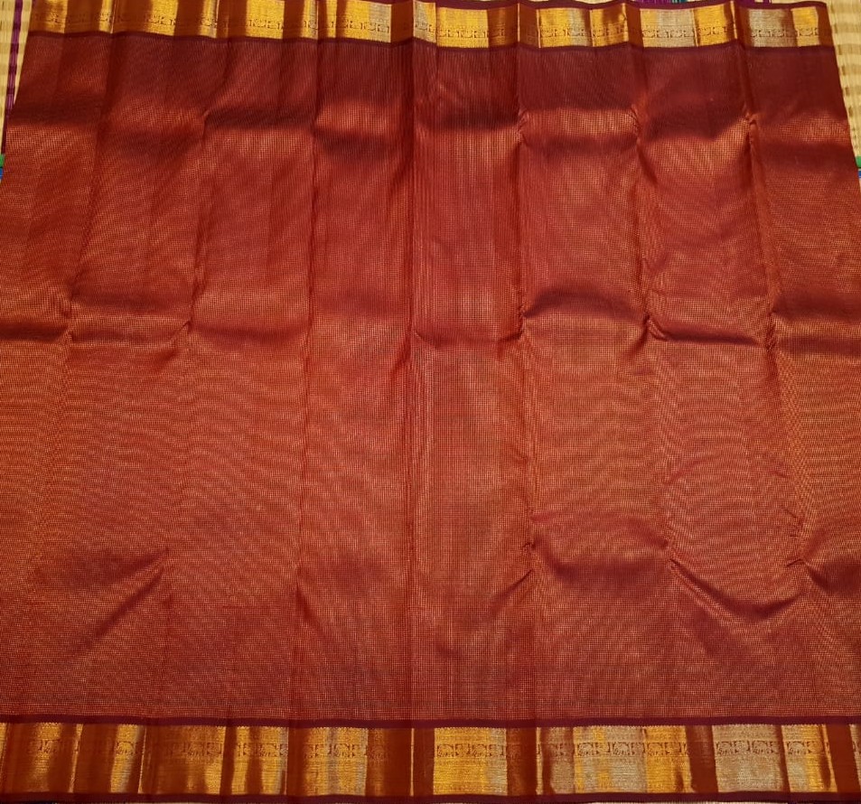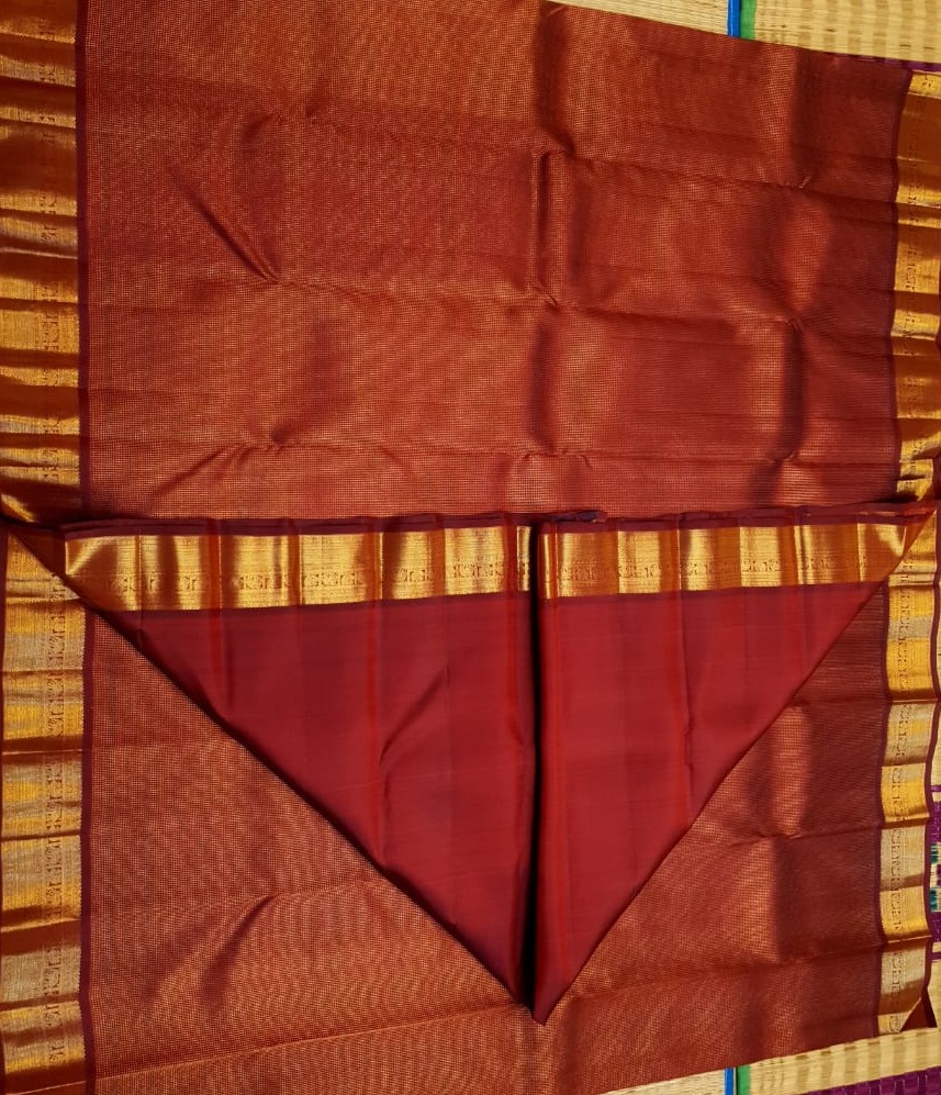Maroon Kanchipuram Handloom 4G Pure Gold Korvai Pattu Silk Saree